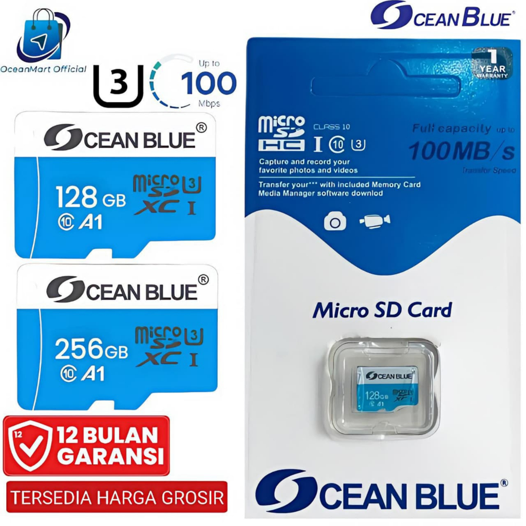 Memory Card HP Micro SD MMC Class 10 U3 128 256 GB Kartu Memori Kamera CCTV Oceanblue
