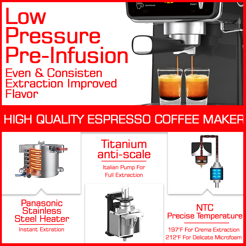 ✅LAHOME 5 in 1 Coffee Maker Machine Espresso Mesin Kopi Otomatis Cold/Hot Brew Layar Sentuh LCD 20 Bar