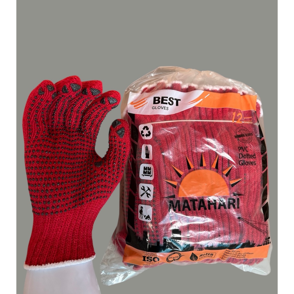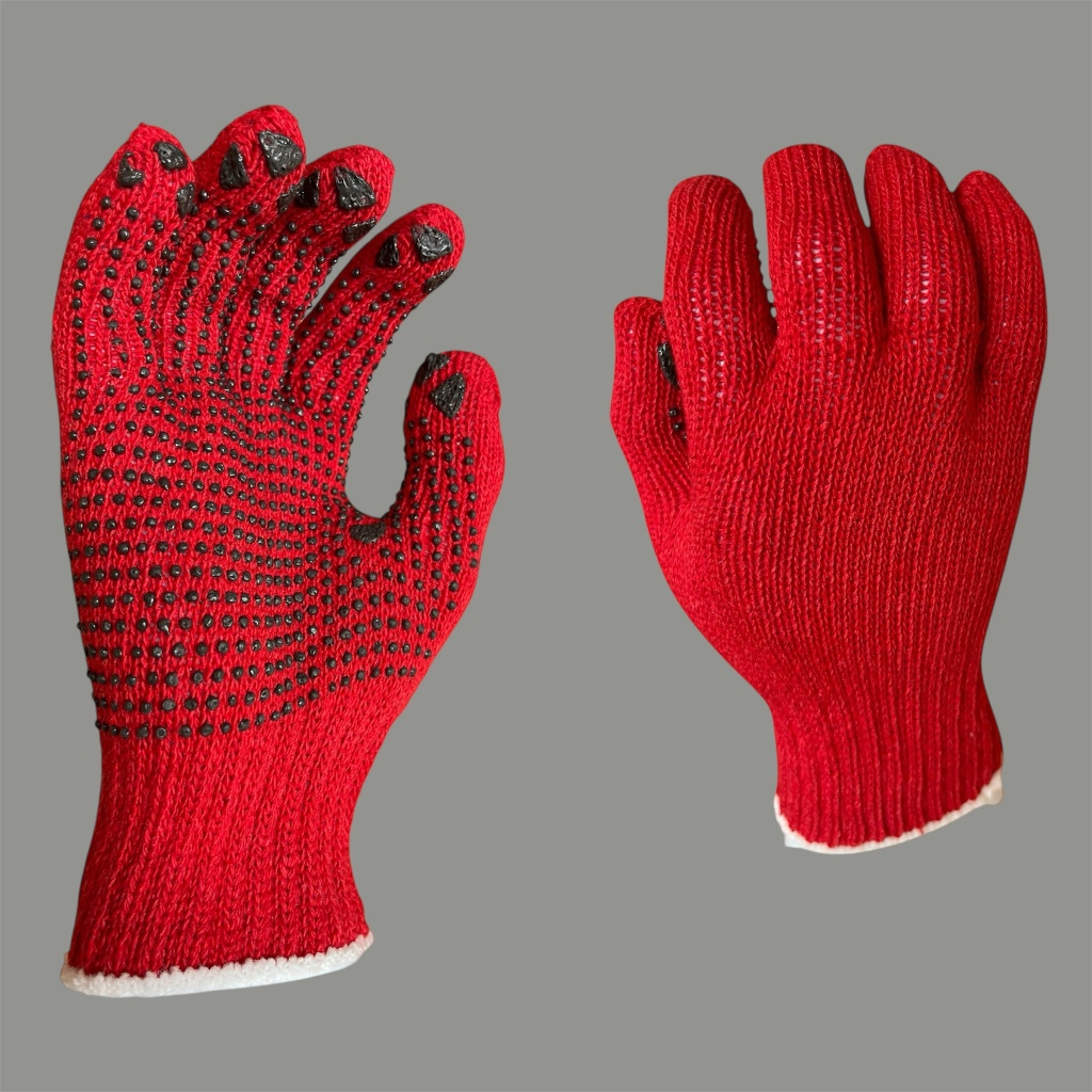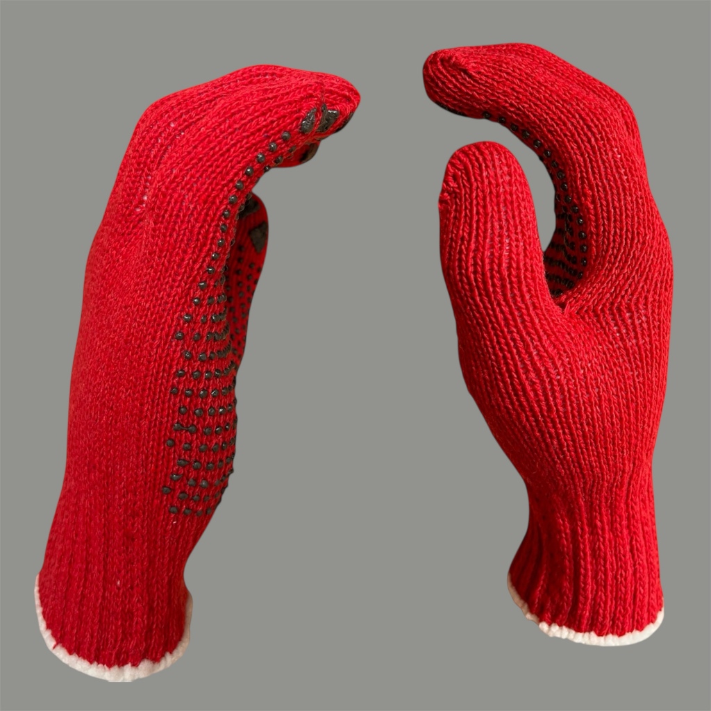 Sarung Tangan Benang MERAH Bintik Hitam (12 pasang)