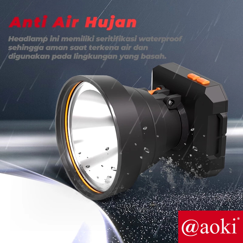 AOKI Senter Kepala 40W 60W cahaya terang USB type C baterai lithium tahan lama adaptor 5V2A