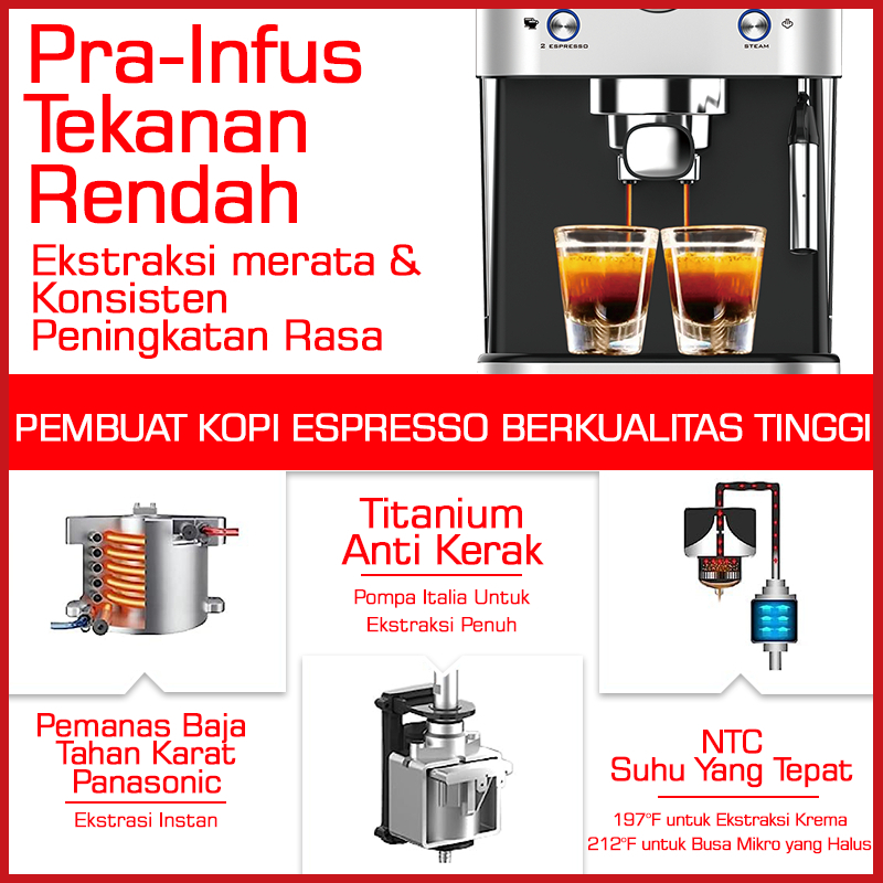 LAHOME 5 in 1 Espresso Cold/Hot Brew Coffee Maker Machine Kopi Mesin Hot/Iced Mesin Kopi Espreso 20Bar