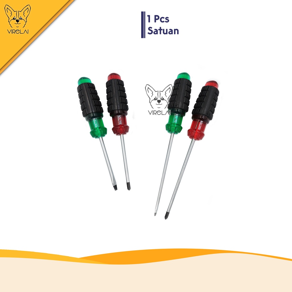 Obeng Gagang Karet Panjang / Pendek Magnet (+)(-) / Rubber Handle Screwdriver [RACTION]