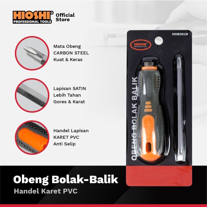 HIOSHI /HOB002B/Obeng 2Way/Bolak Balik/Plus Minus/ Multifungsi/4" X 6mm/Karet/Blister - PRO