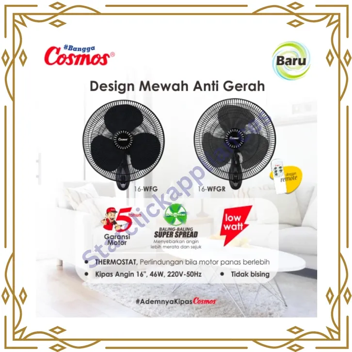 Kipas Angin Dinding Remote COSMOS / Wall Fan 16-WFG / 16 WFG / 16WFG / 16 WFGR [Garansi Resmi]