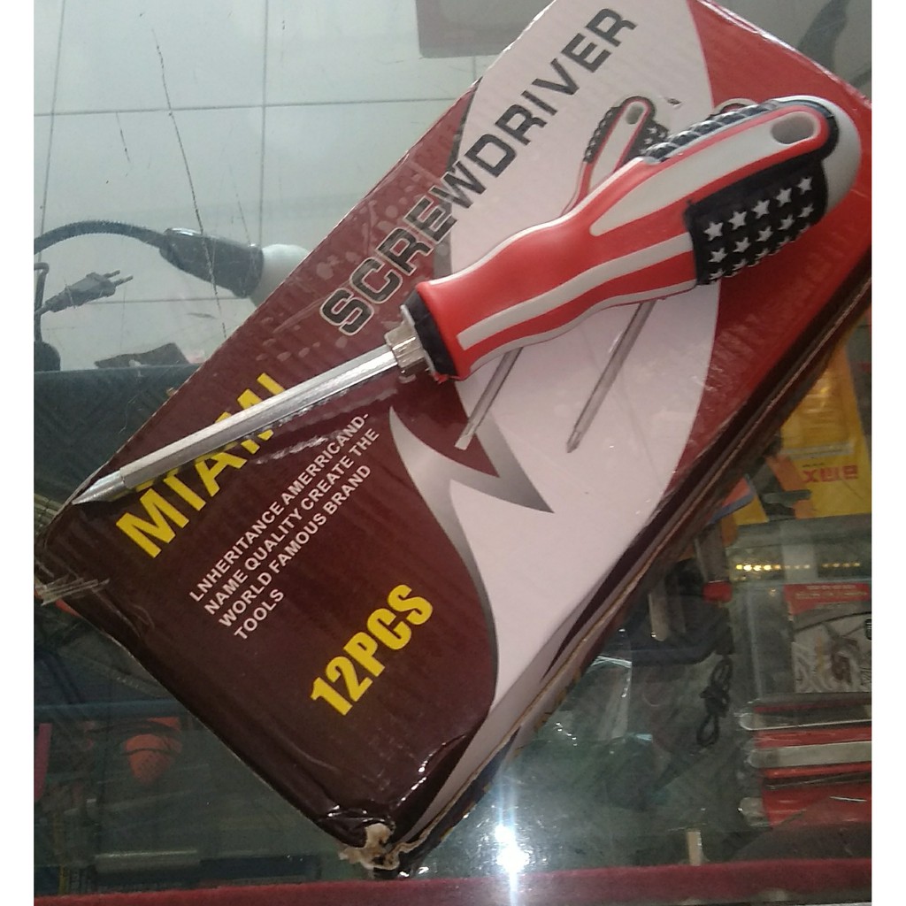 Obeng bolak balik Amerika Magnet gagang karet 4 inch total 8 inch plus minus