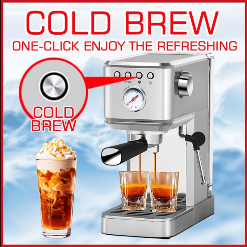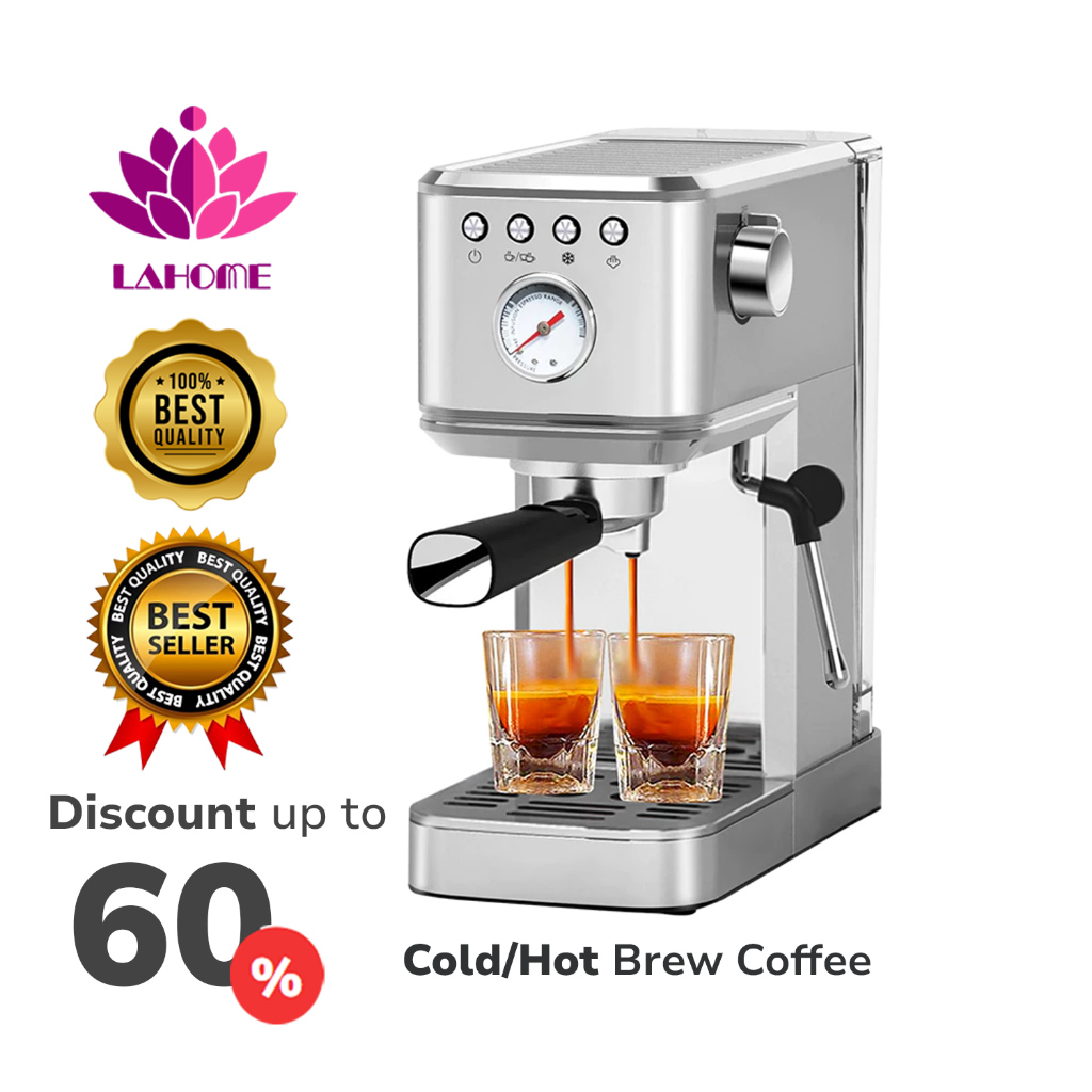 LAHOME 5 in 1HOT & COLD Brew Coffee Machine Espresso Maker Smart Pre-infusion Professional 20 Bar Mesin Pembuat Kopi Esp