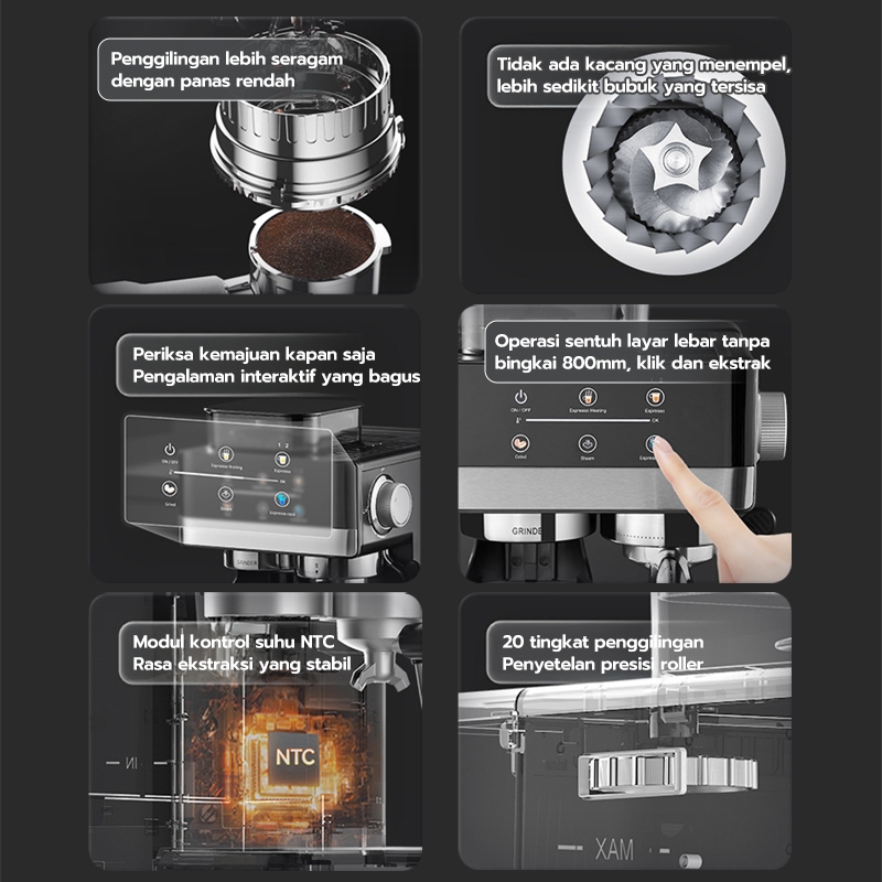 Mesin Kopi Espressoee Cold/hot Brew Grinder 51MM Heater Coffee Maker Smart Screen Kontrol/Penggiling Kopi Digital 20 si