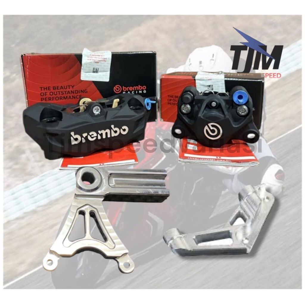 Paket kaliper brembo m432 black + p2 black silver logo + breket depan belakang ninja rr