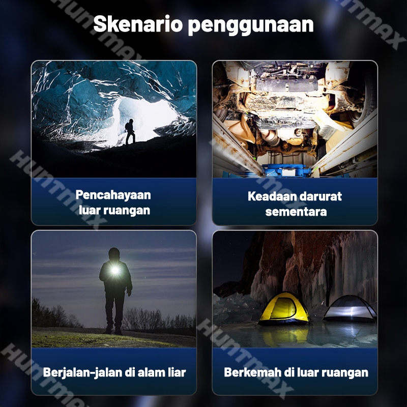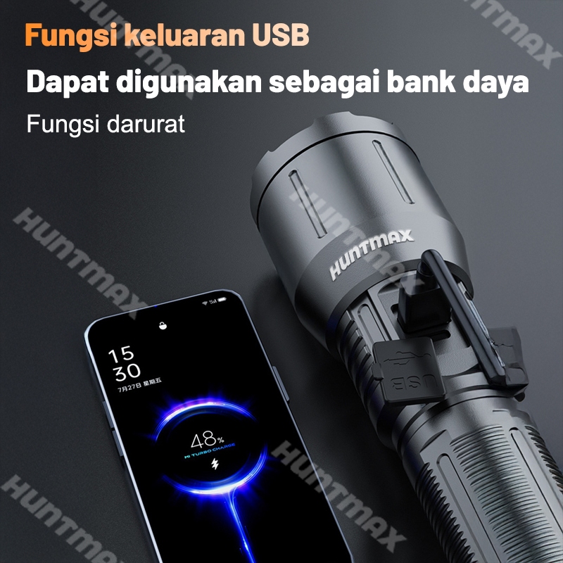 HUNTMAX HM-911 Flashlight Senter LED Super Terang Zoom Teleskopik 3000mAh 1800lumen 100w