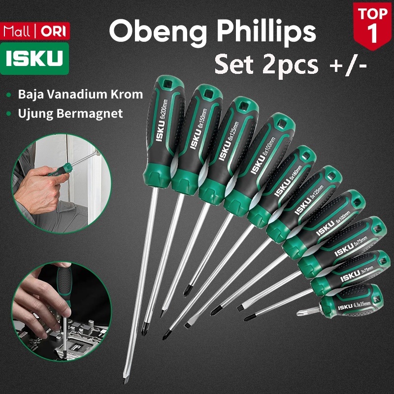ISKU Obeng Set Magnetik 2pcs Screwdriver Set Plus Dan Minus Obeng Set【2】