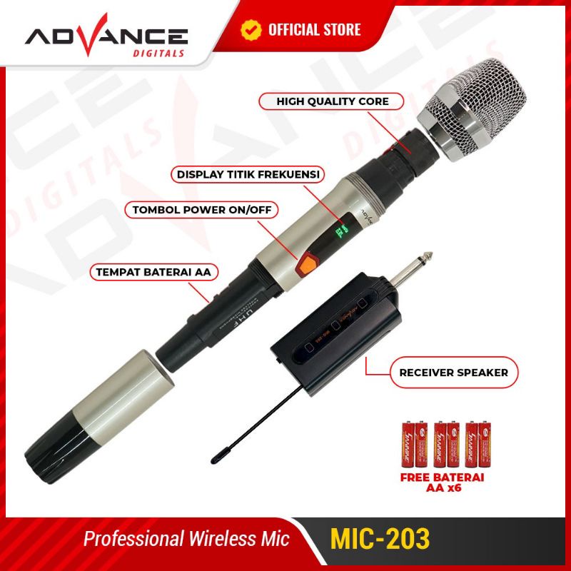 Advance MIC-202 / MIC-203 Profesional 2 Mic Wireless Microphone Karoke Mic Duet - Mic Double Karaoke ADVANCE 202 / 203 M