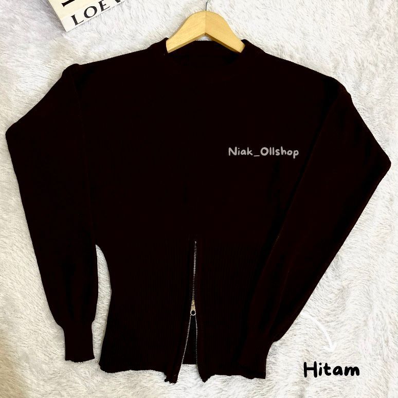 NIAK- Calaa Sweater Rajut Resleting zipper Bawah | Atasan Rajut Wanita Terbaru Kekinian