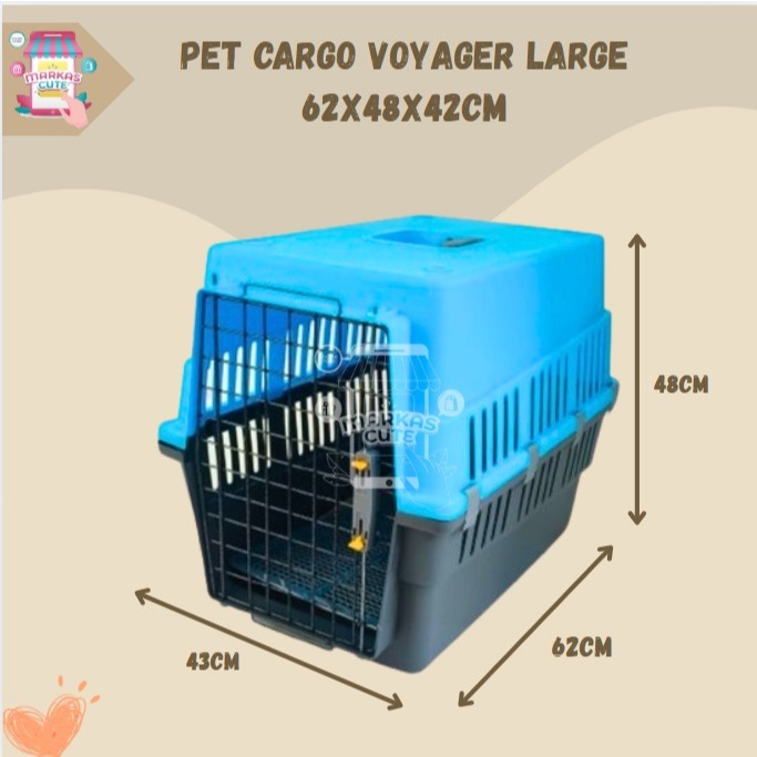 PET VOYAGER (L) Dengan Pintu Besi FREE Baut & Mur 62cm x 43cm x 48cm JUMBO - Pet Cargo Carrier Pintu Besi Jumbo Besar An