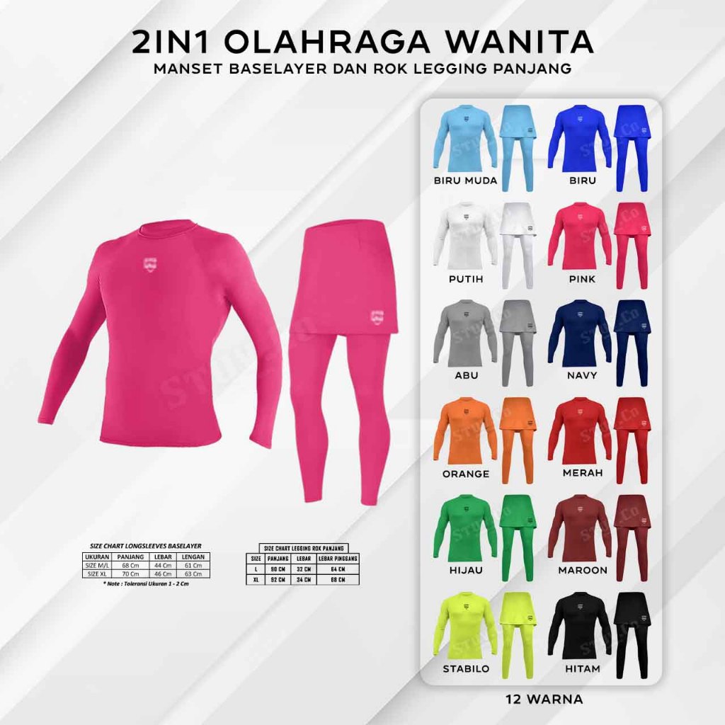 PROMO 2IN1 STELAN MANSET BASELAYER LENGAN PANJANG LONGSLEEVE CELANA ROK LEGGING HYGET ELASTIS OLAHRAGA FITNES GYM WANITA