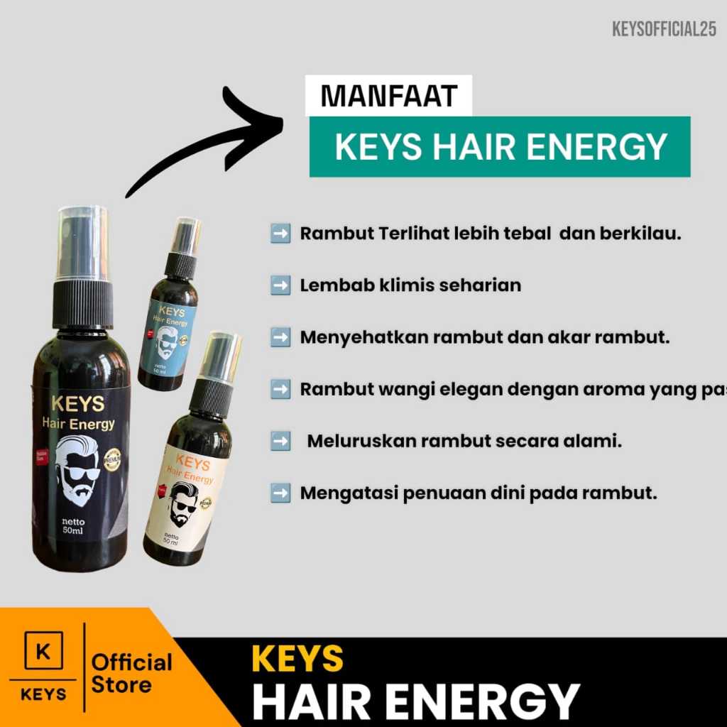 Minyak Rambut Pria Spray Keys Hair Energy Berkilau 50ml Wangi Sepanjang Hari
