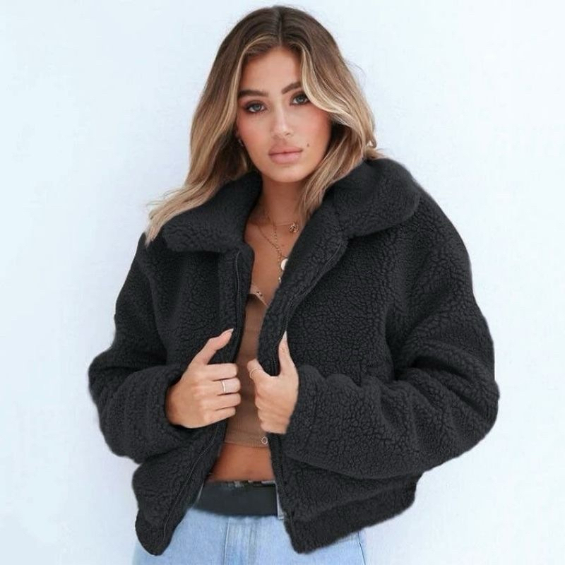 Sweater Jacket Zip Crope Sherpa Bulu Domba Wanita
