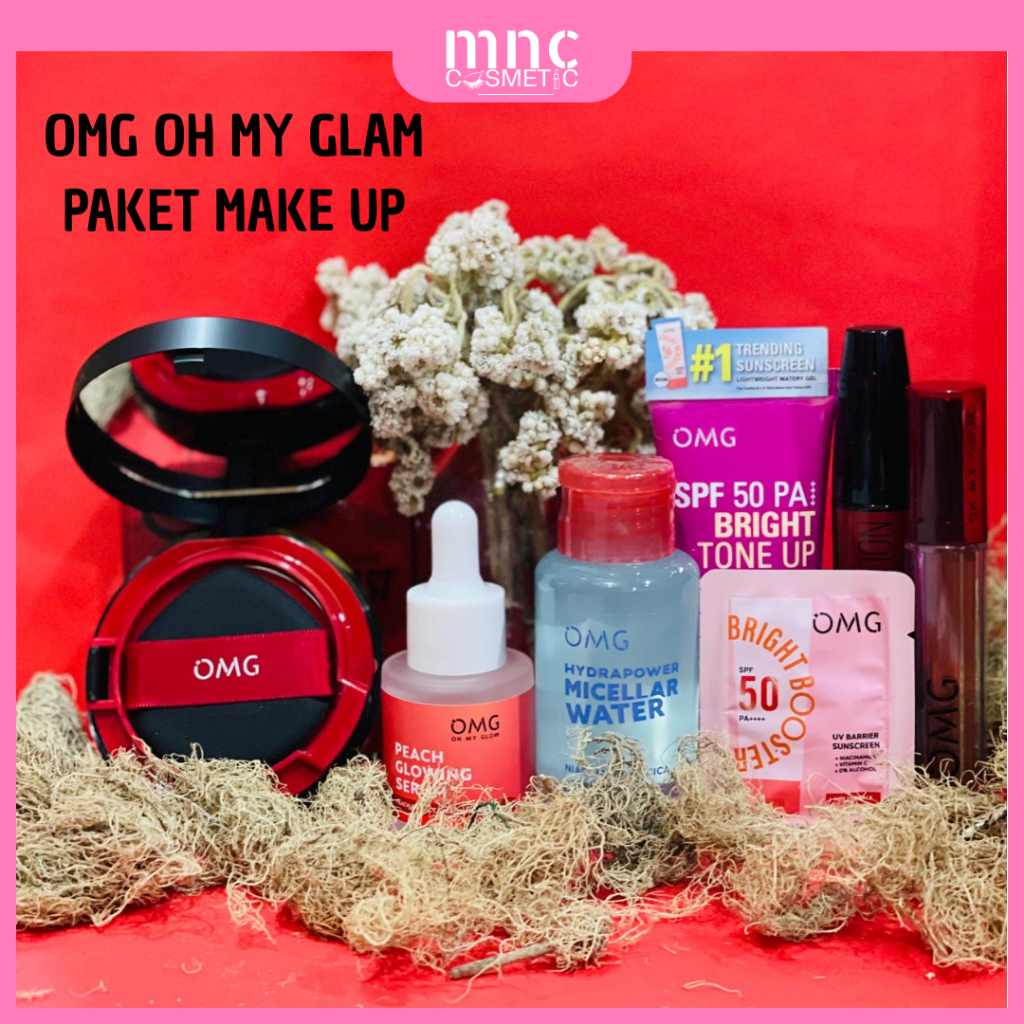 OMG Paket Make Up OH MY GLAM - Cushion / Serum Peach / Micellar Water 65ml / Sunscreen Tone Up / Mascara / Lip Cream / N