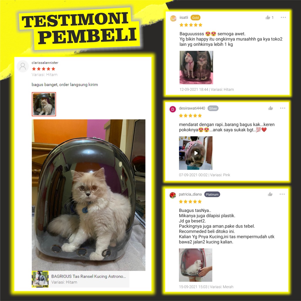 BAGRIOUS Pet Cargo Tas Ransel Kucing Astronot Transparan Murah Cat Bag Carrier Tas Gendong Kucing Travel Capsule Tas Hew