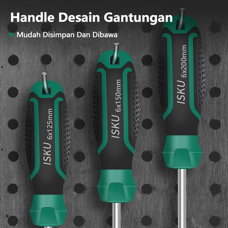 ISKU Obeng Set 2pcs 375mm Plus Minus Screwdriver Set Tip Magnetik/Alat Perkakas Obeng Sets