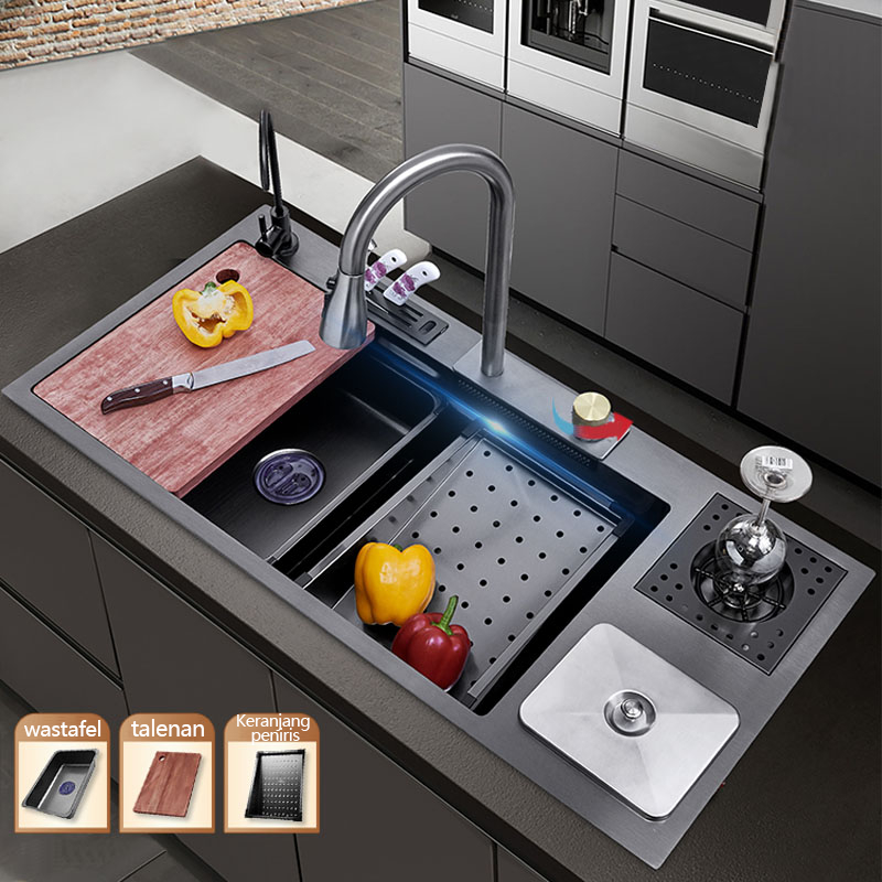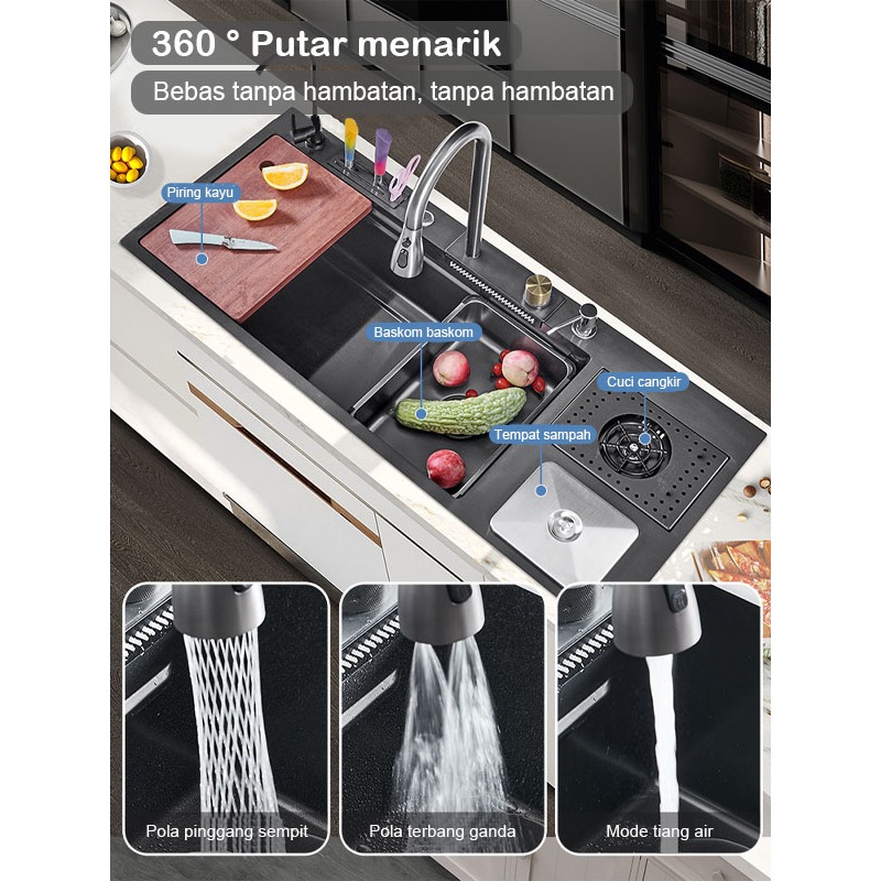 ⚡GILA DISKON ⚡ Wastafel Mewah Hitam 114x46cm [ 3 Tahun] - Beli Sekarang Gratis Sampah
