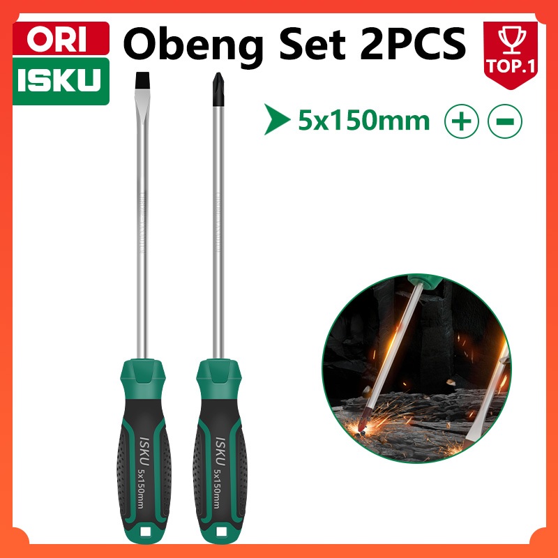 ISKU Obeng Set Screwdriver Sets 2PCS 5150mm + —Plus / Minus Magnet 2 in1 komplit Obeng Super Kuat Bahan Chrome Vanadium