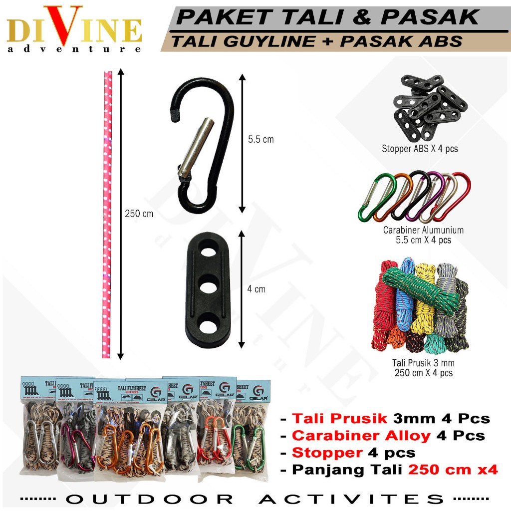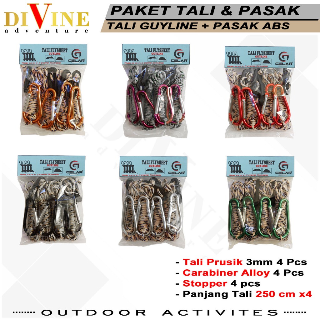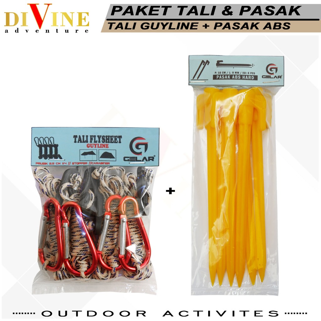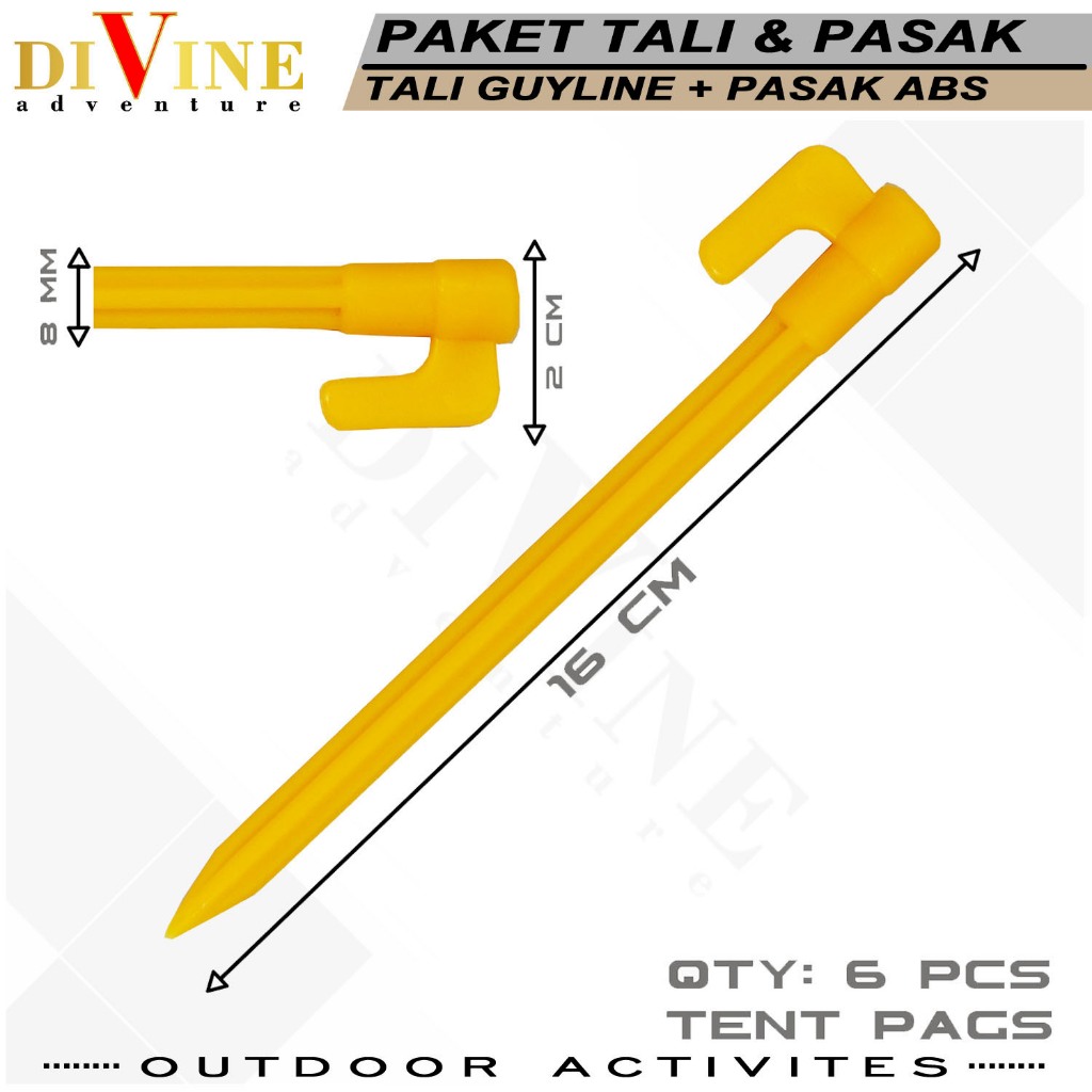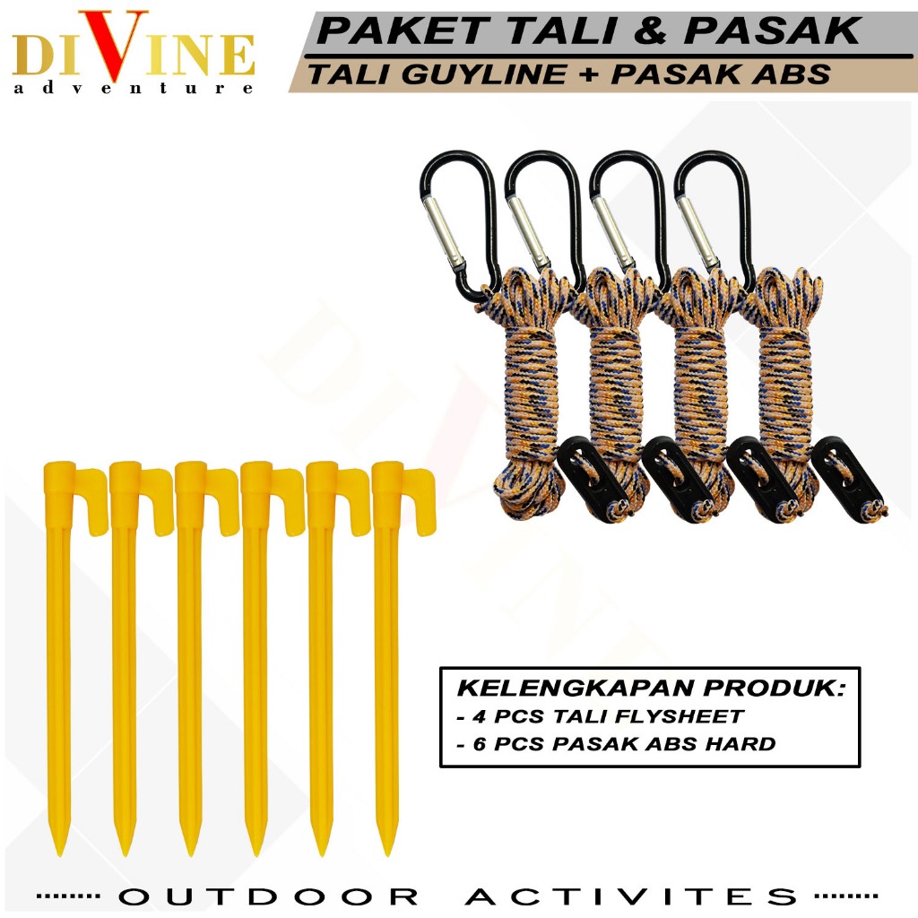paketan pasak tali guyline paket 6 pasak ABS dan 4 tali flysheet tali tenda pasak tenda set serbaguna alat Camping