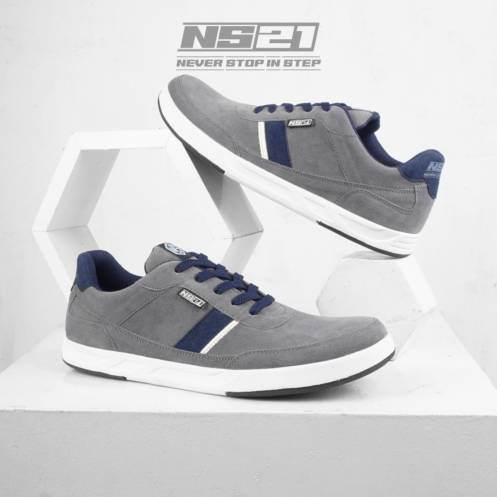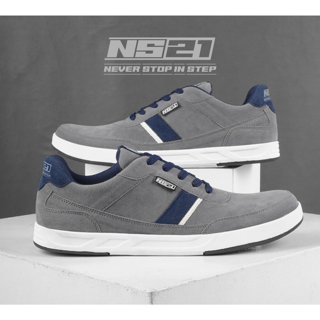 [PROMO] Sepatu Pria Sneakers Kasual Suede Premium Abu kombinasi Hitam Terbaru