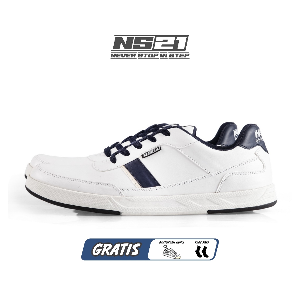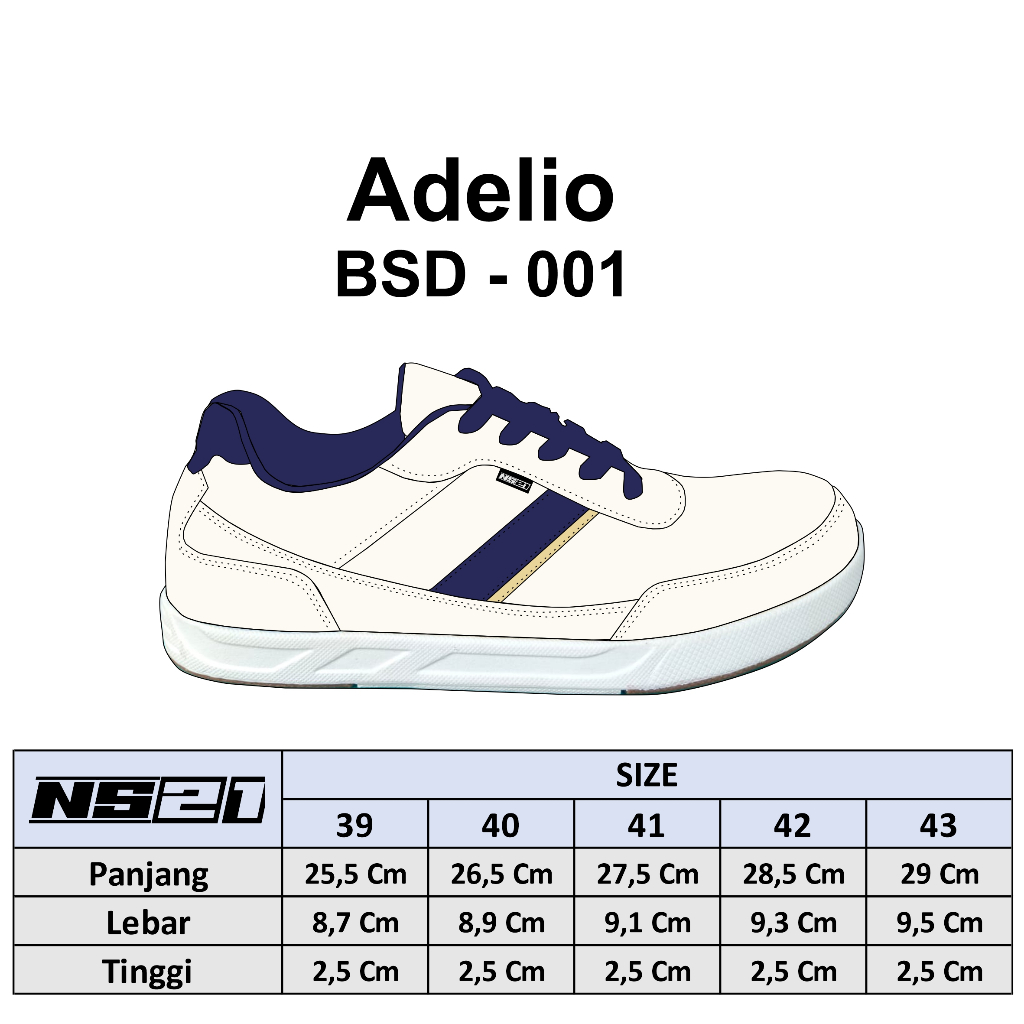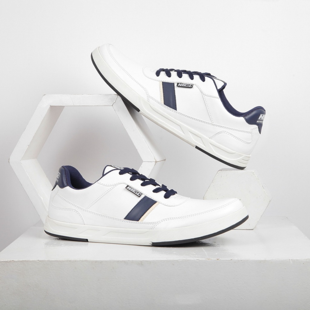 [PROMO] Sepatu Pria Putih Navy Terbaru Bahan Kulit Sintetis Premium Adelio