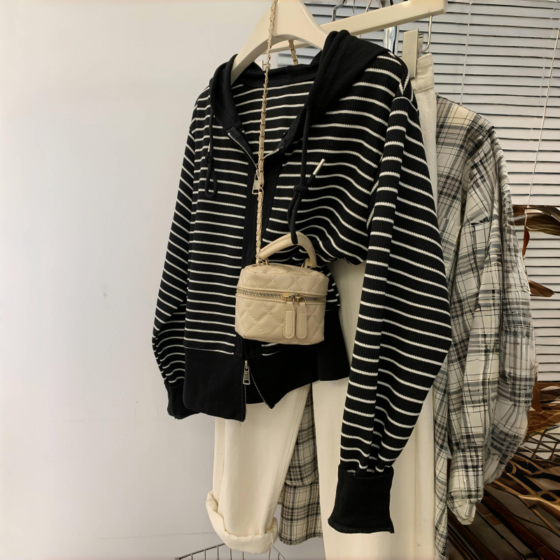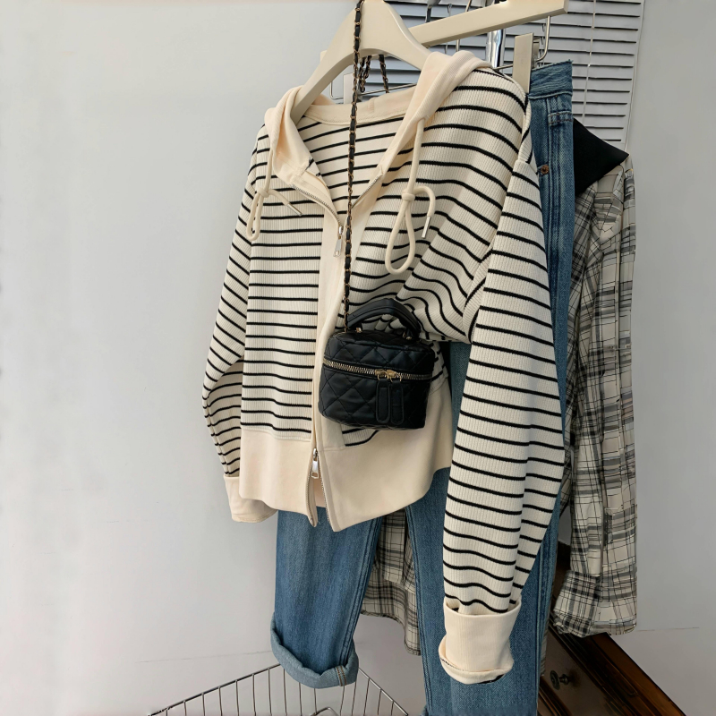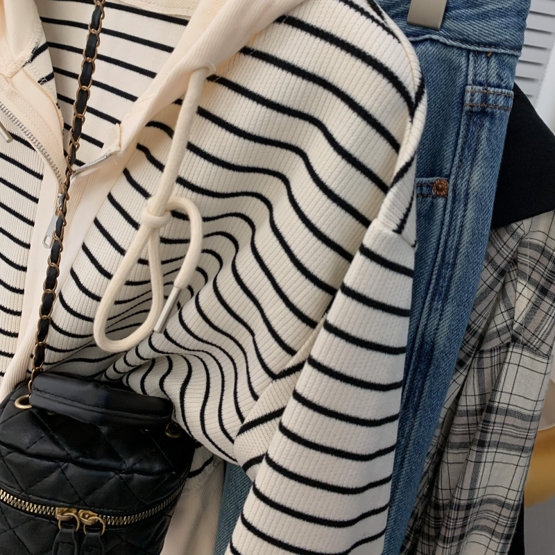 Atasan kardigan rajutan bergaris/sweater aprikot