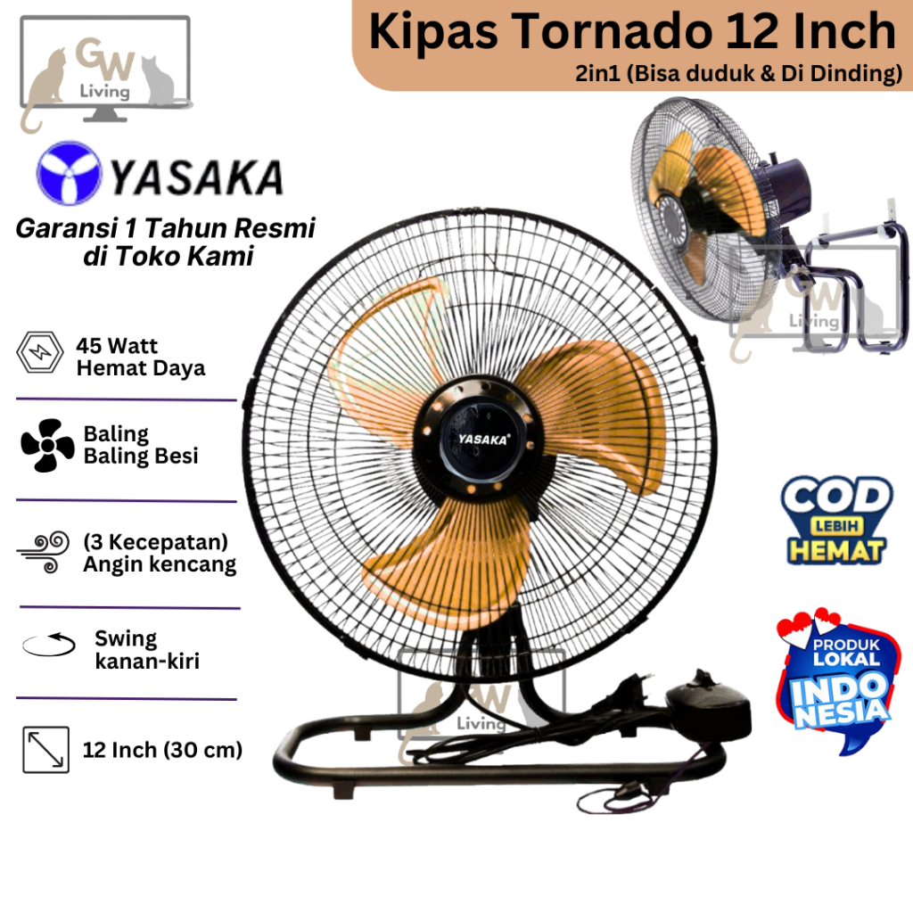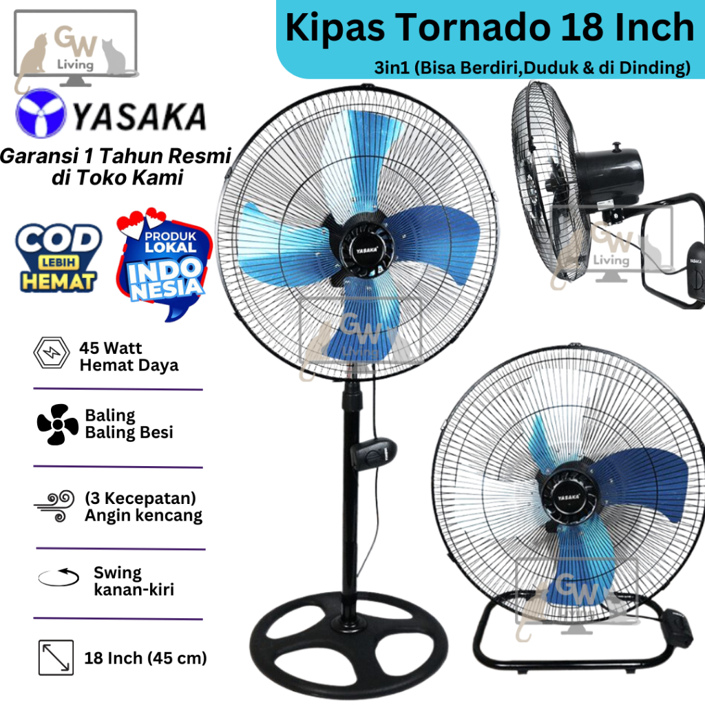 Kipas Angin Besi Tornado JUMBO 18 Inch 16 Inch 12 Inch 10 Inch Hemat Daya Kencang Murah Baling EMAS