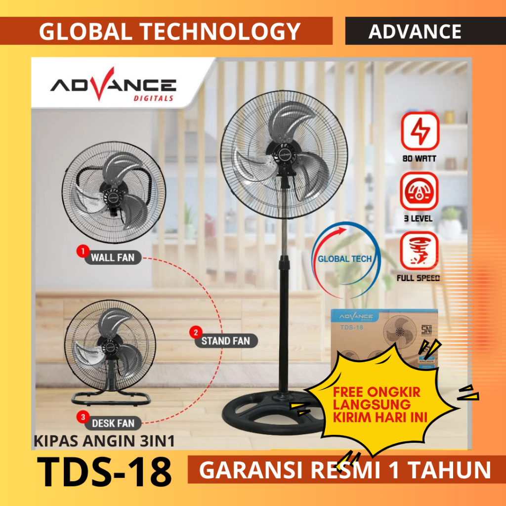 KIPAS ANGIN ADVANCE TDS-18 KIPAS ANGIN 3 MODEL TDS18 KIPAS ANGIN TORNADO 18 INCH 3IN1
