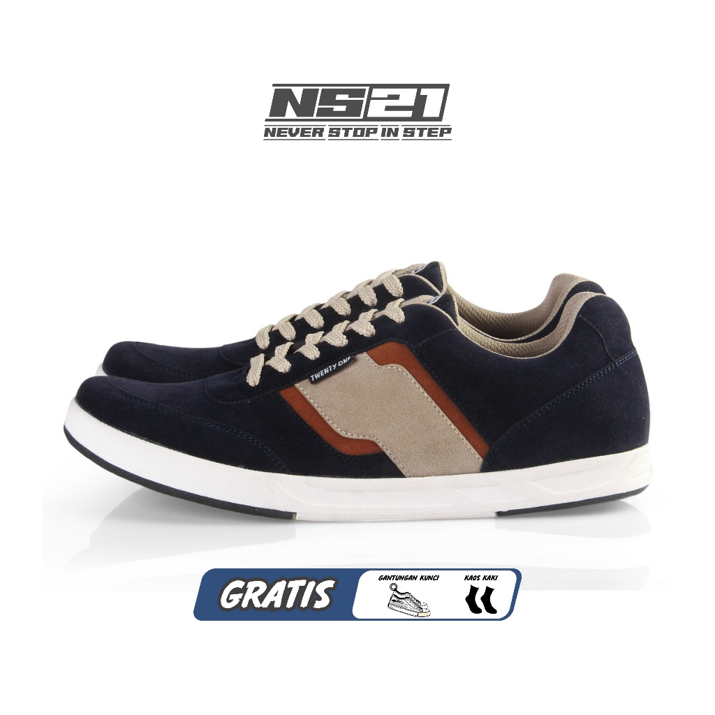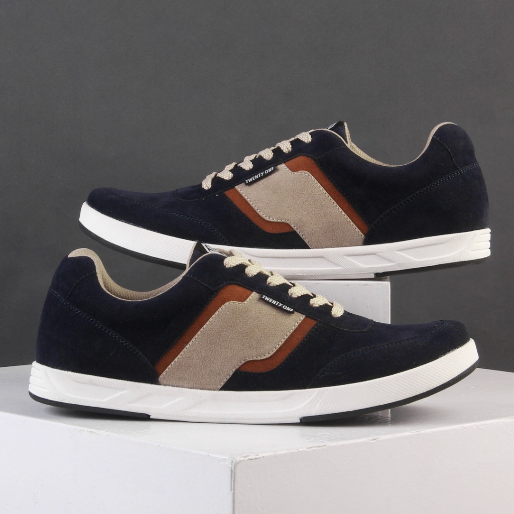 [PROMO] Sepatu Pria Kets Sneakers Suede Navy Kombinasi