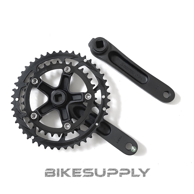 Crank Set (Crankset) Sepeda Merk Lasco CF 37 Double 2 Speed 34 46T BCD 110 Panjang Arm Pendek 155 mm Warna Hitam Black T