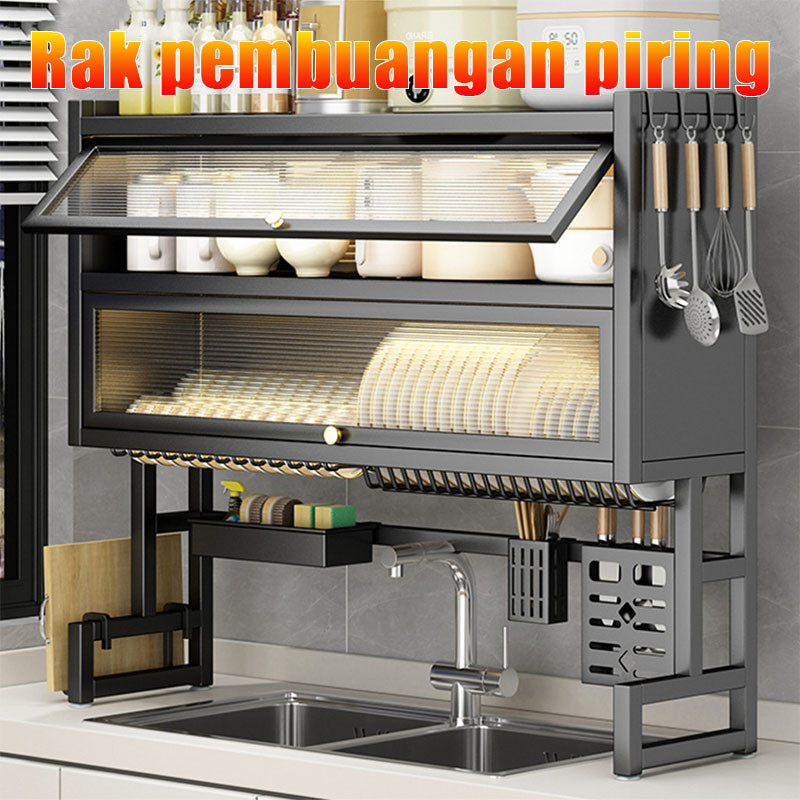 Rak Piring Wastafel Stainless Steel Dengan Penutup Rak Dapur Stainless Steel Rak Wastafel Cuci Piring