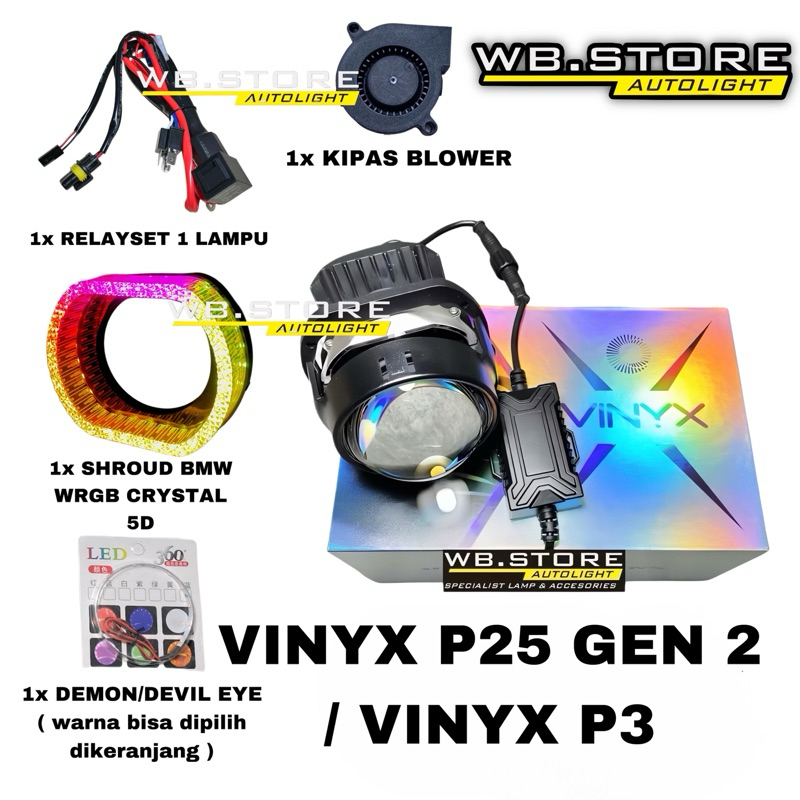 PAKET LENGKAP BiLed Vinyx P3 P25 2.5 INCH 60 WATT 50 WATT PURPLE LENS Jauh Dekat Flat Cut 2.5 INC vinyx p3 50 watt biled