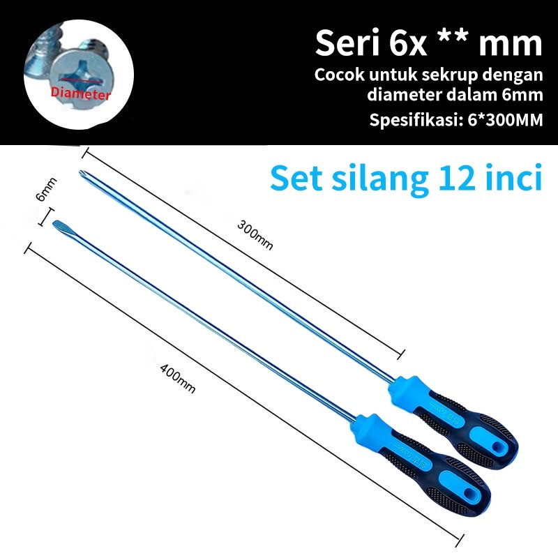Obeng Panjang Magnet 12 INCH 6300mm Screwdriver Minus Obeng Gagang Karet Biru