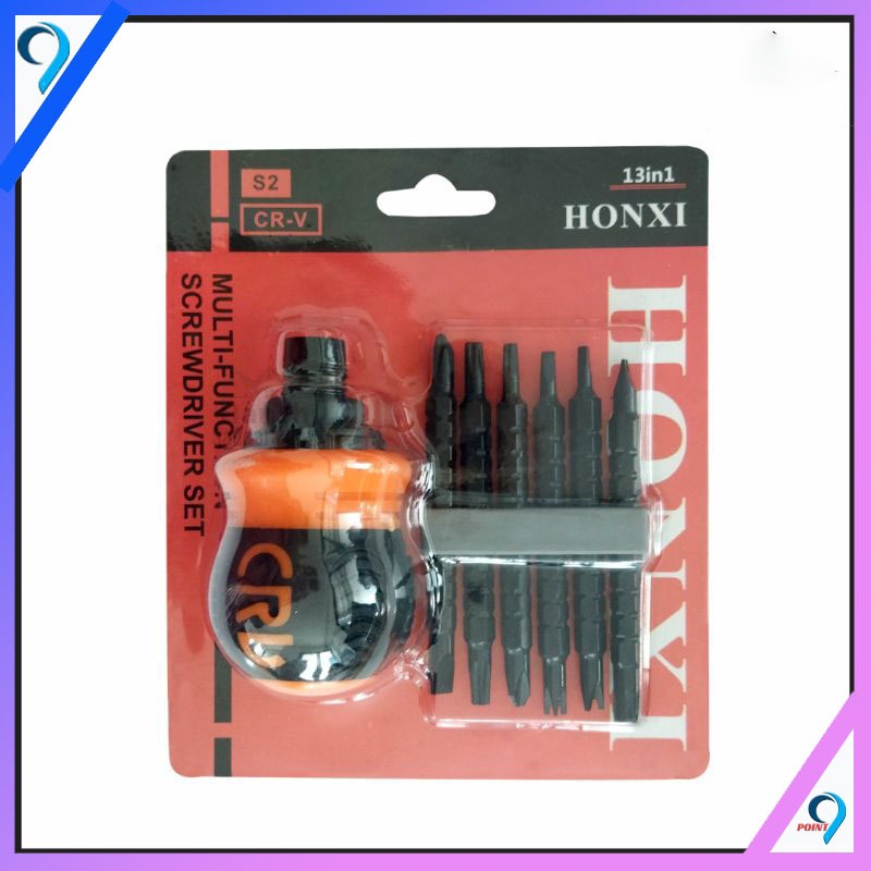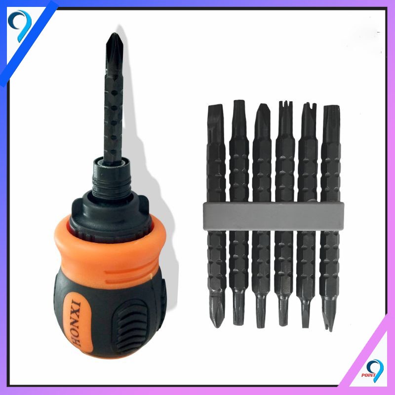(Free magnetisator) Obeng CRV Set 13in1 Obeng Cebol buntek karet Dua Arah bolak balik cebol mini Multifunction Screwdriver