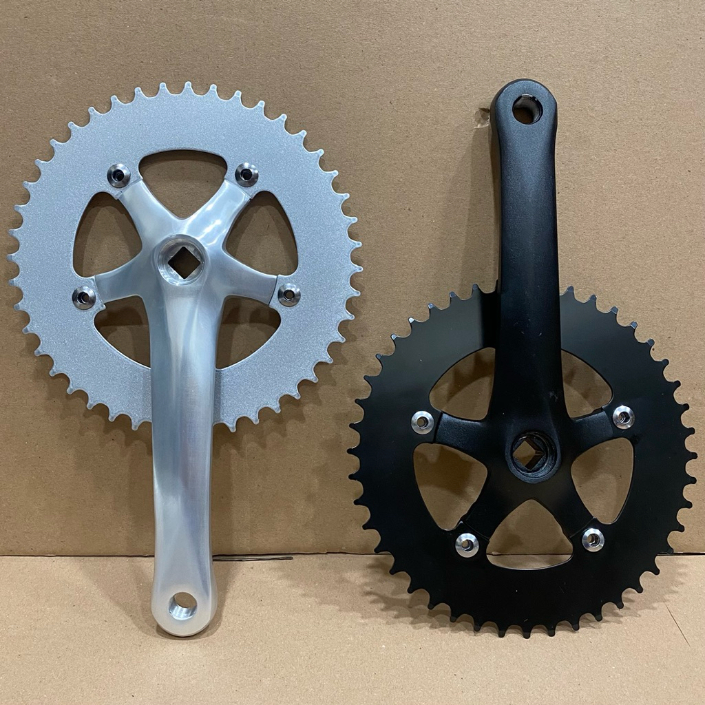 Crank Single Speed Aluminum Alloy 44T 110BCD Hitam Silver