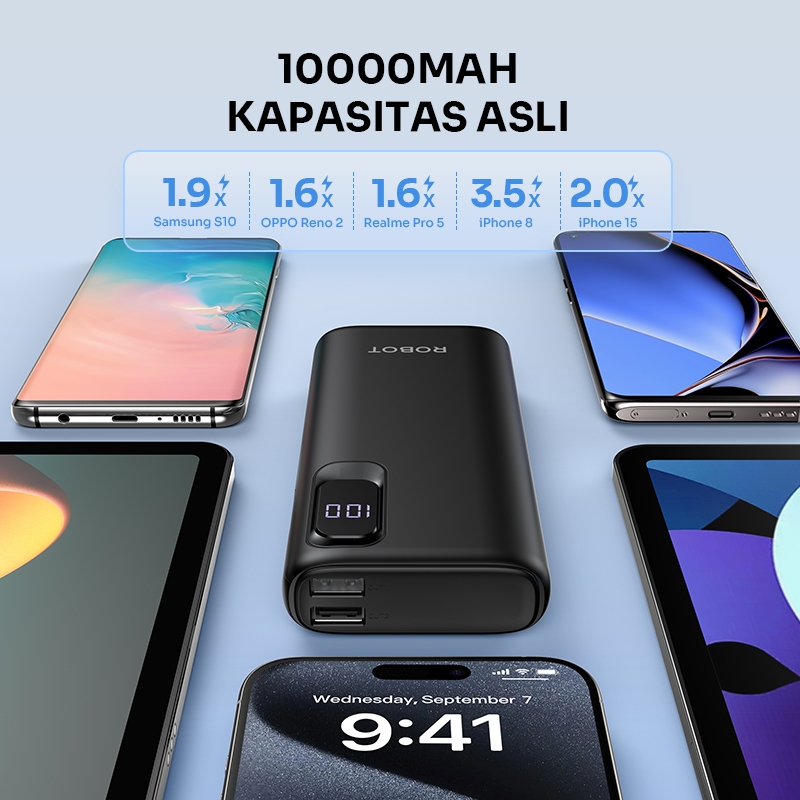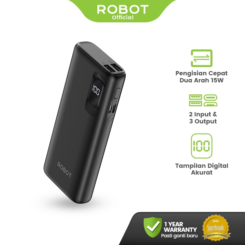 ROBOT Powerbank Fast Charging 10000mAh 15W with LED Display Input 3 Output Powerbank RT102 Original - Garansi 1 Tahun