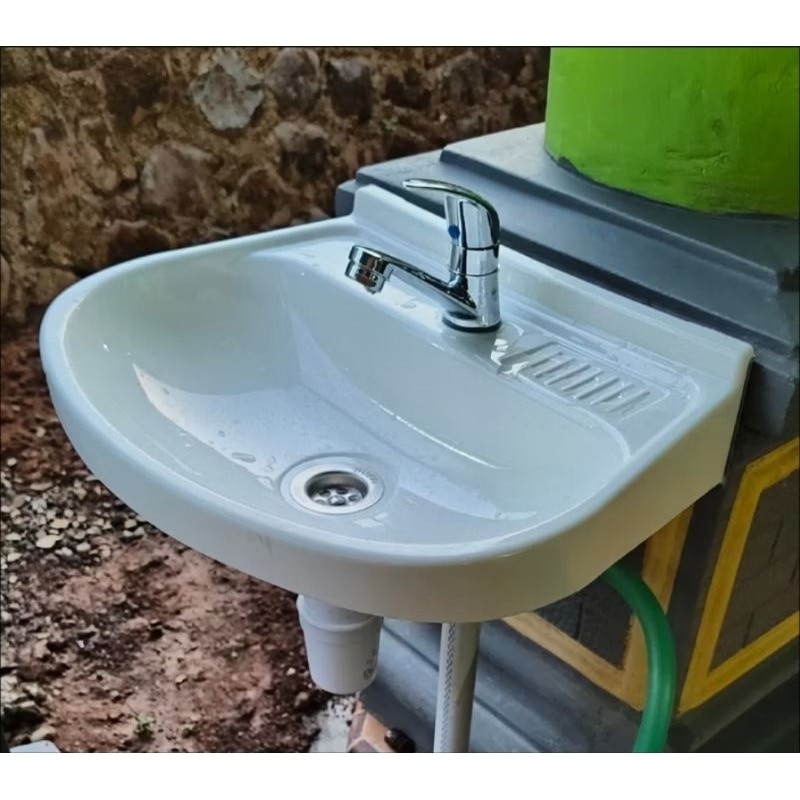 Wastafel Plastik PVC PREMIUM dengan sifon Botol dan KRAN UP DOWN//