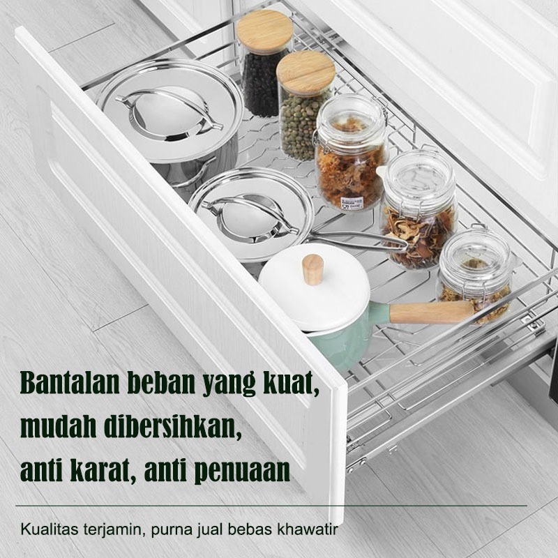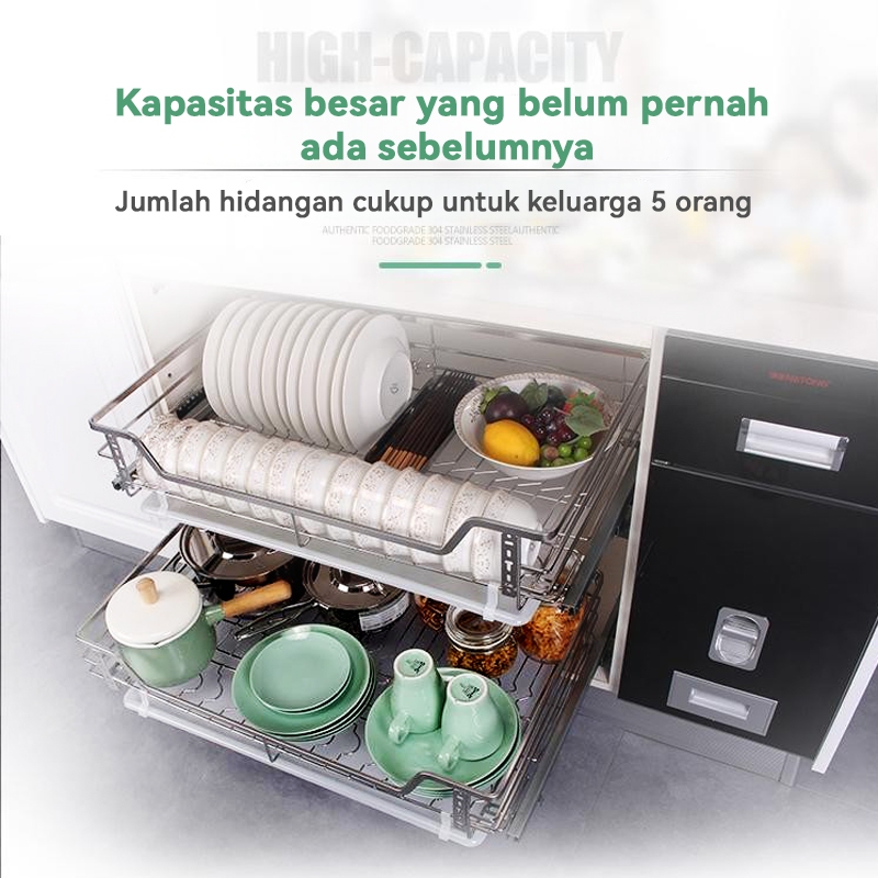 ✨2 susun✨Rak Piring Stainless Steel Rak Dapur piring Rak Serbaguna Rak Kabinet Lemari Dapur Keranjang Geser Laci Rak