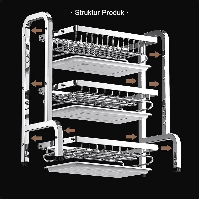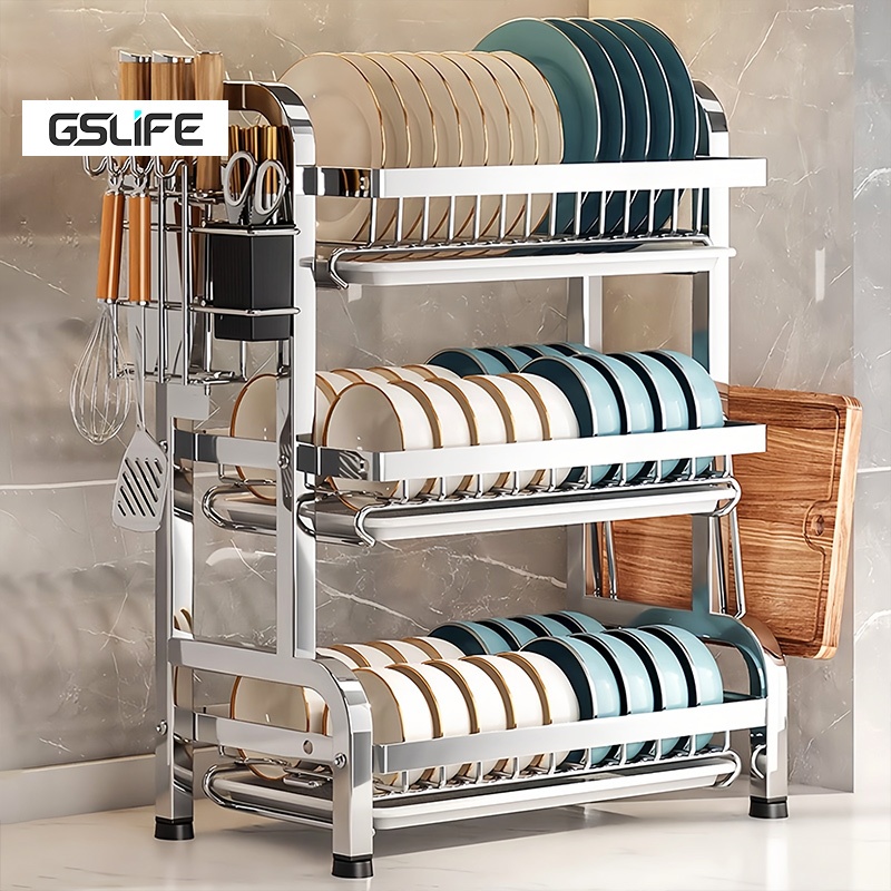 GSLIFE Rak Piring Stainless Steel Rak Dapur Rak Cuci Piring Wastafel Rak Mangkuk Piring Dengan Aksesoris