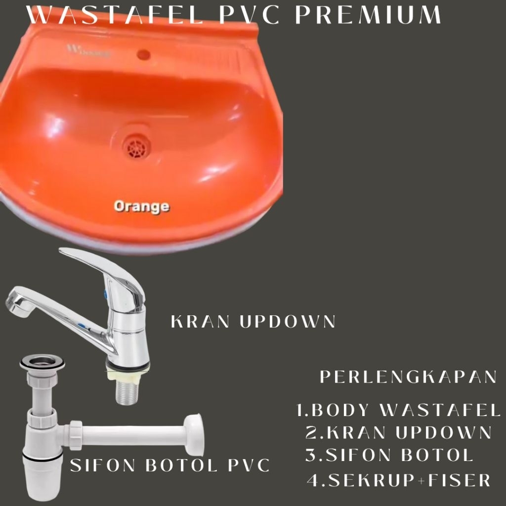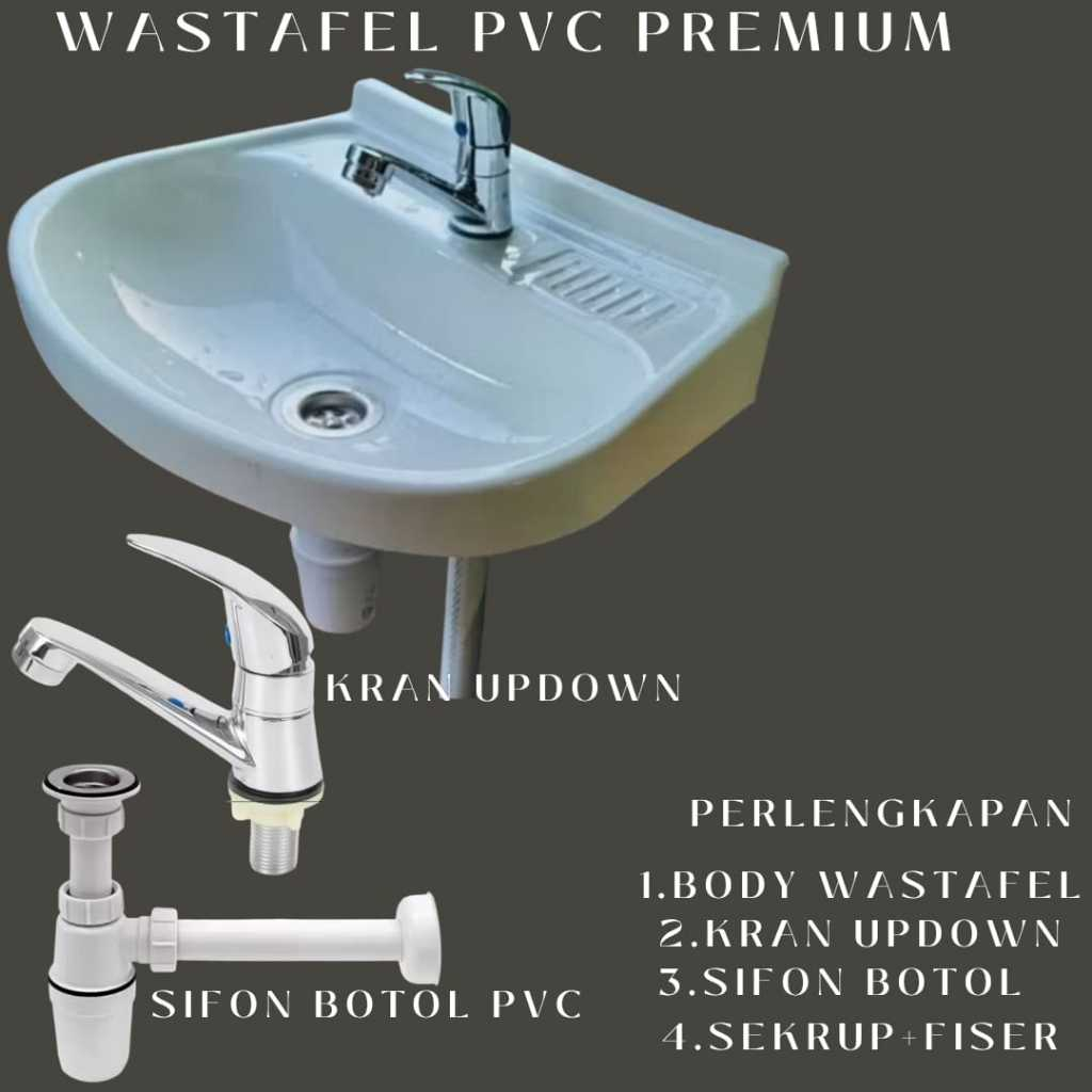 Wastafel Plastik PVC PREMIUM dengan sifon Botol dan KRAN UP DOWN//