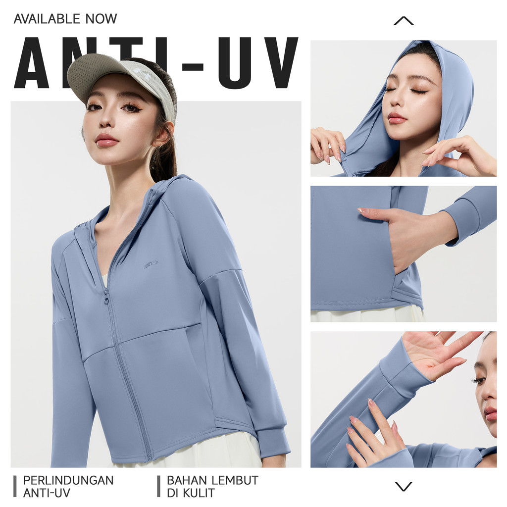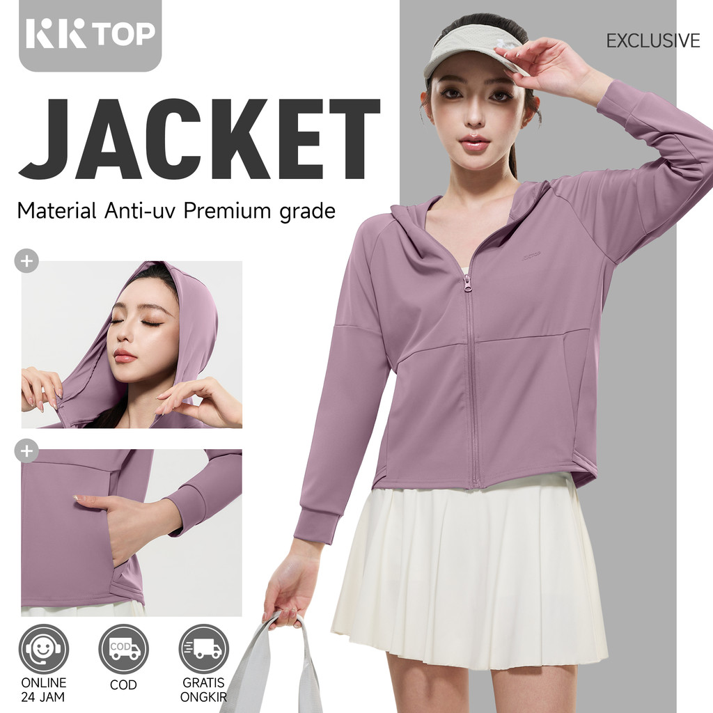 KKTOP Jaket Olahraga Wanita Jaket Anti UV UPF 50+ Baju Gym Atasan Olahraga Yoga Cepat Kering (J007)