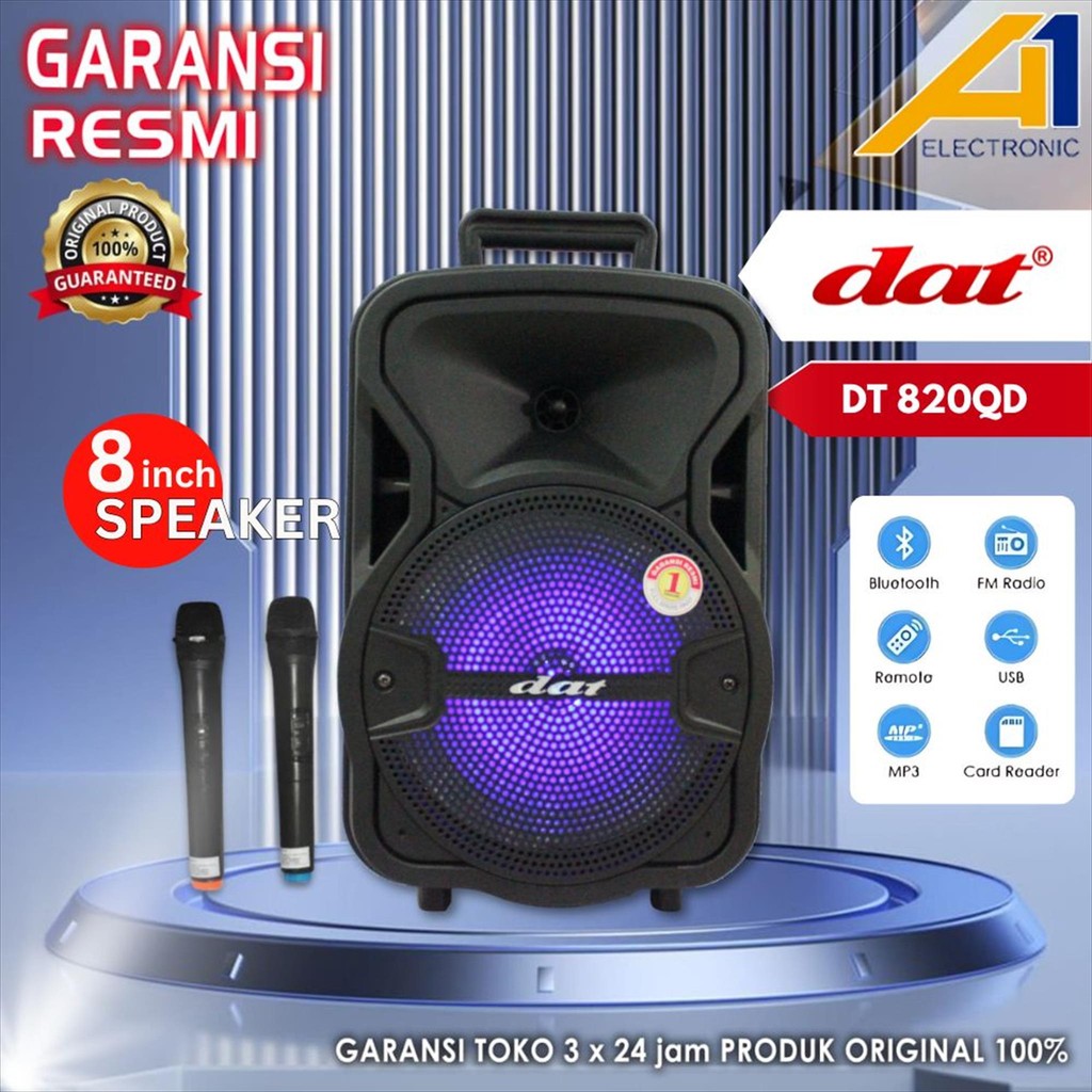 Dat Speaker Portable DT820 QD / DT 820QD Speaker Trolley Bluetooth 8" Woofer 2 Mic Wireless