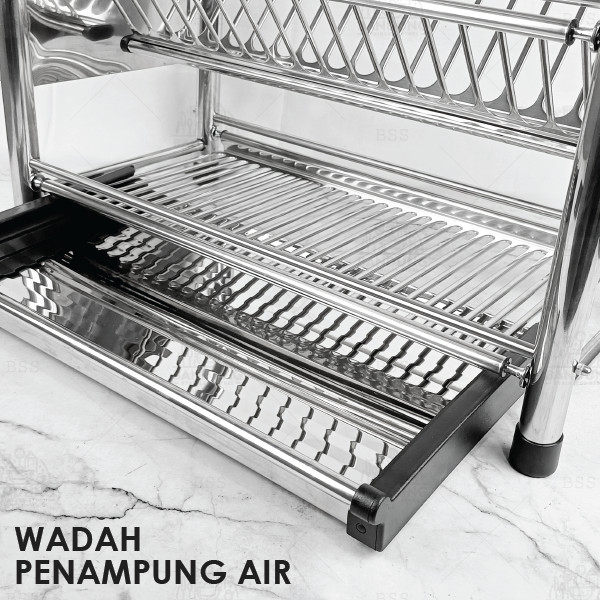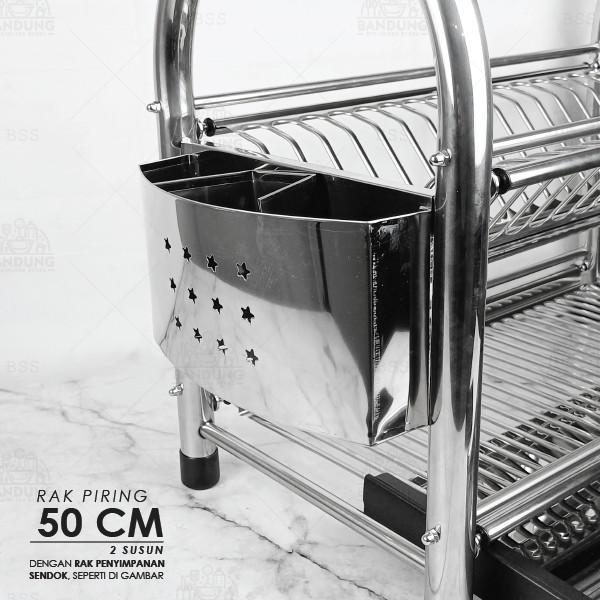 Rak piring 50cm / 60cm stainless steel tebal tempat sendok pisau 2 susun
