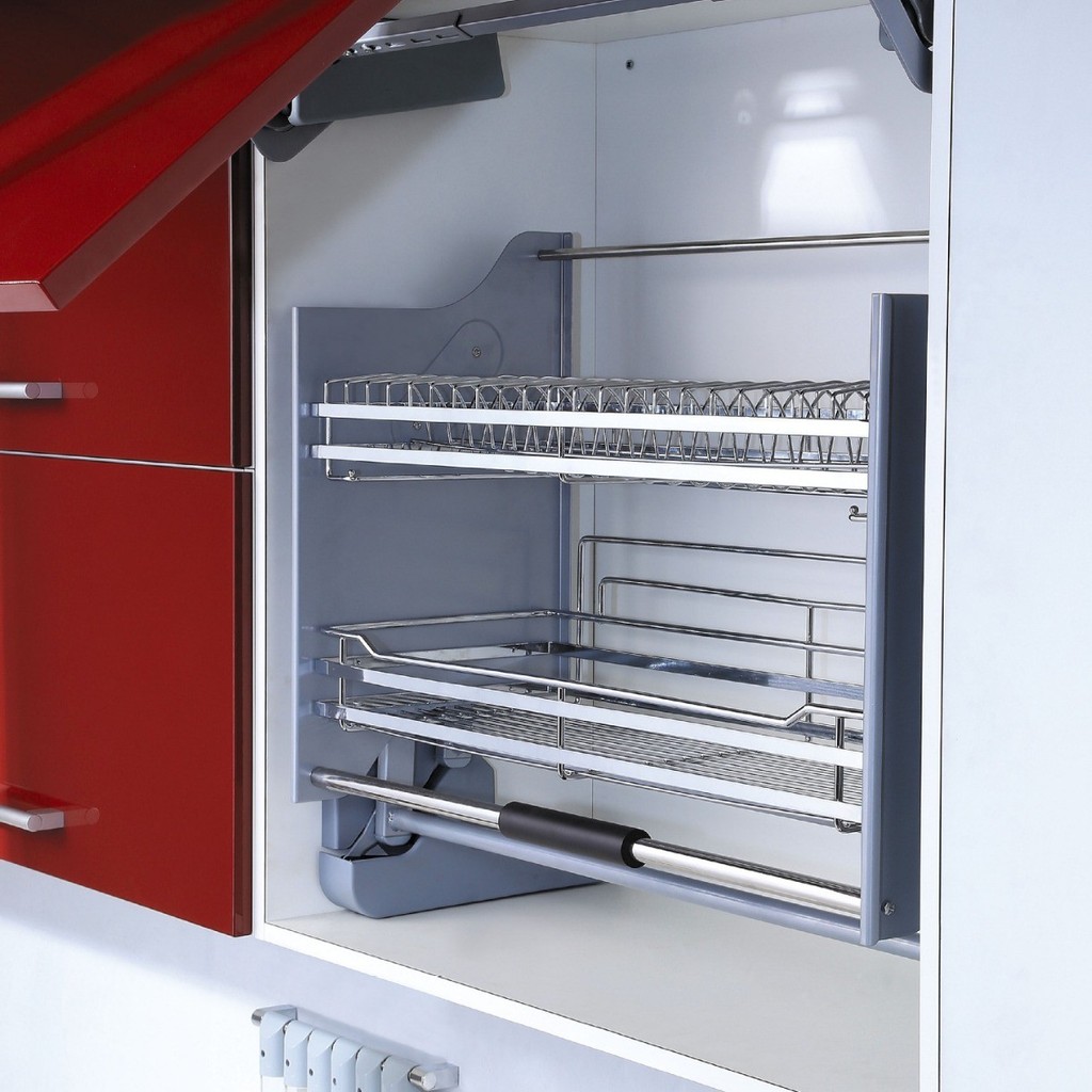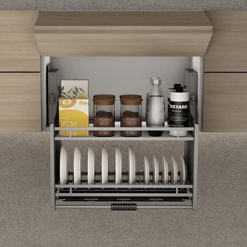 Rak Piring Pull Down Untuk Kitchen Set Lemari Atas 304 Stainless Steel Dapur Kabinet Atas Elevator Pull Down Multipurpos