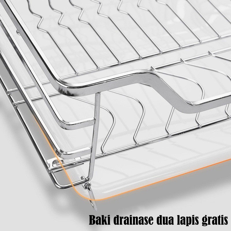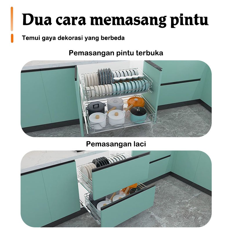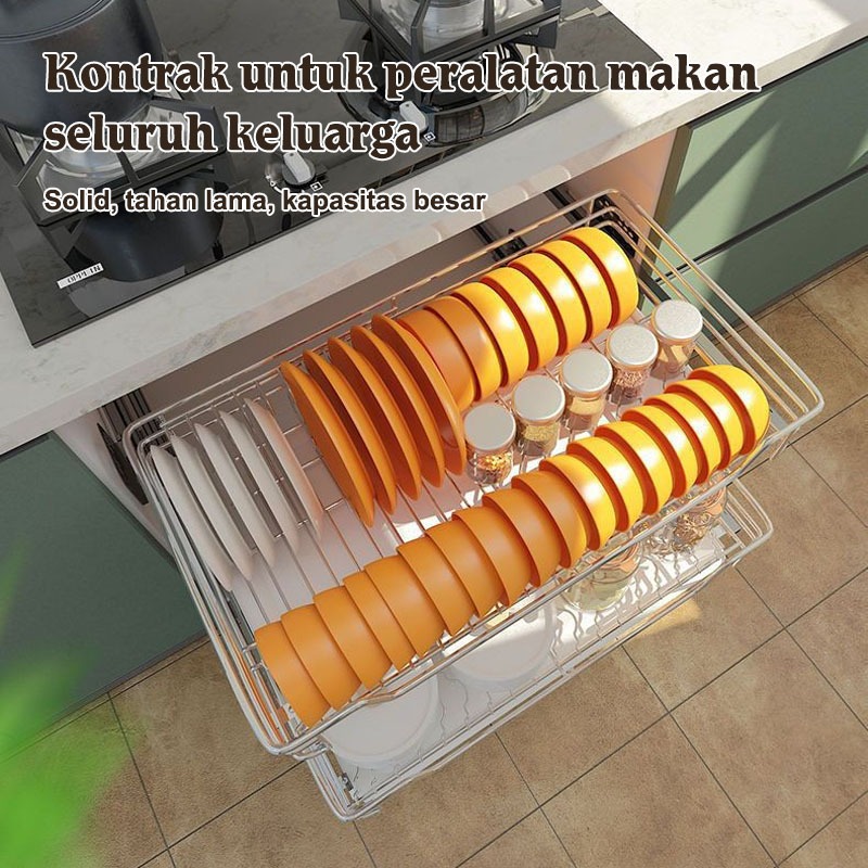 ✨2 susun✨Rak Piring Stainless Steel Rak Dapur piring Rak Serbaguna Rak Kabinet Lemari Dapur Keranjang Geser Laci Rak
