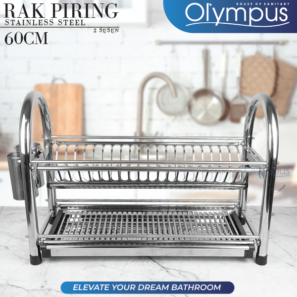 Rak Piring Stainless Steel Multifungsi 50 60cm Peniris Tempat Sendok Pisau 2 Susun