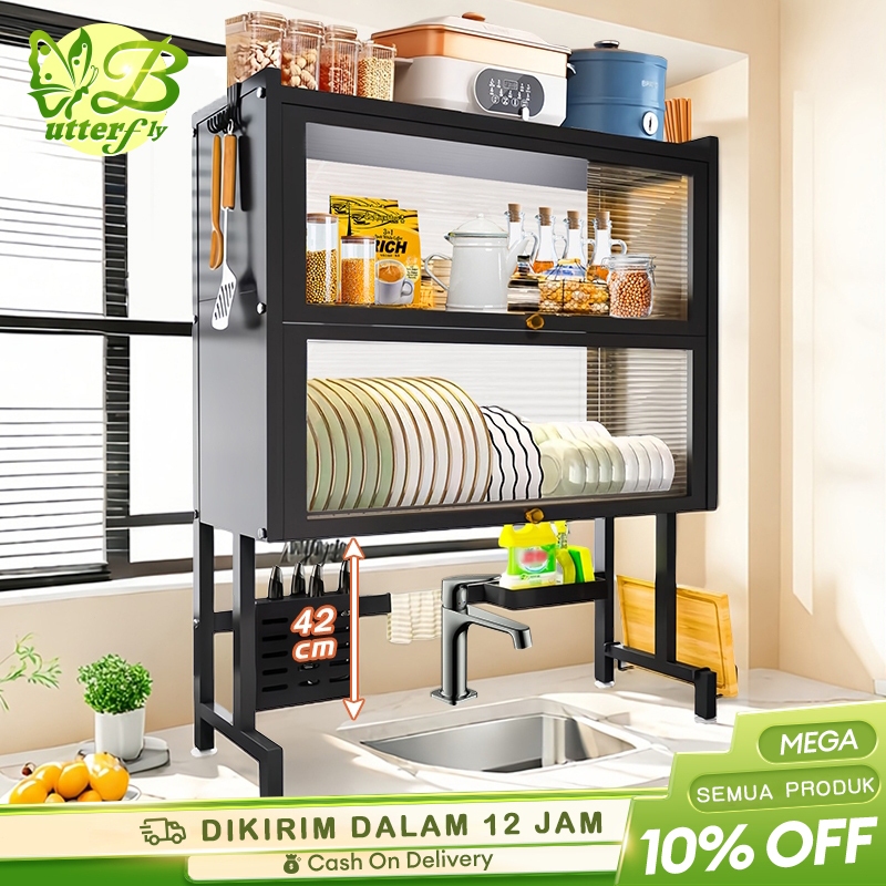 2 Susun Rak Piring Wastafel Dengan Kabinet Rak Wastafel Cuci Piring Rak Piring Stainless Steel Rak Dapur Multifungsi Den